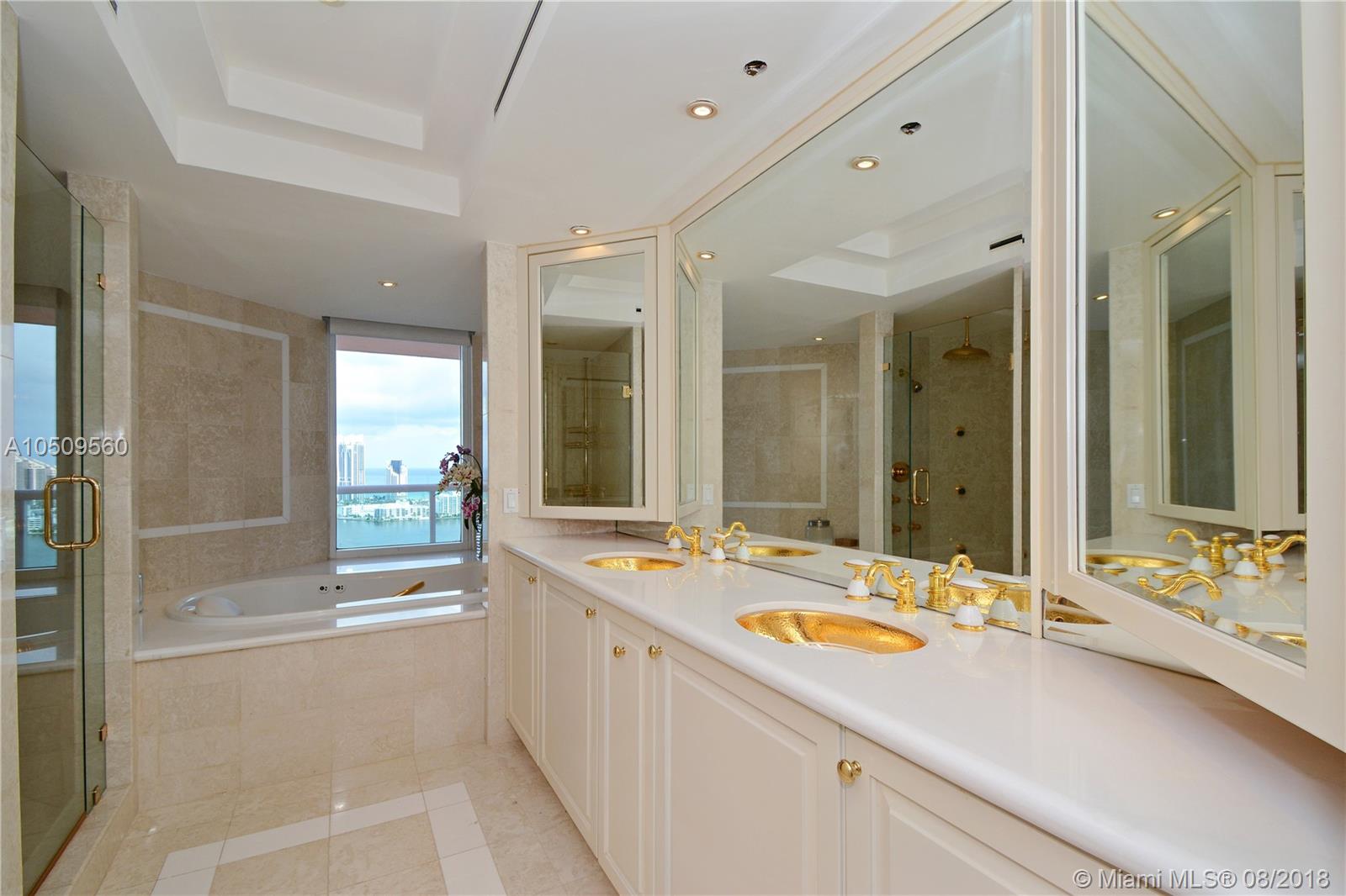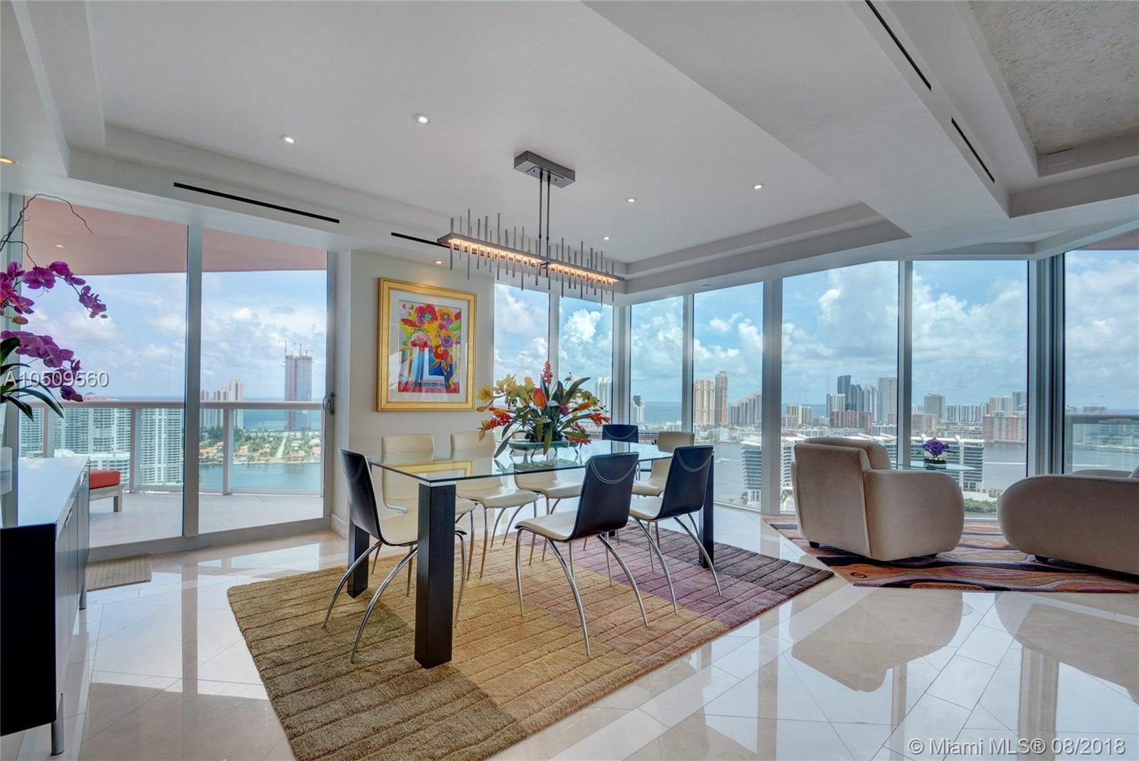 WOW! ENTER THRU PRIVATE ELEVATOR & IMMEDIATELY & THROUGHOUT SEE ENDLESS PANORAMIC OCEAN, BAY & MARINA VISTAS. THIS EXTRAORDINARY SKY HOME WILL LEAVE YOU BREATHLESS. NO EXPENSE SPARED & ALL REDONE BY FINEST ARTISANS & CRAFTSMEN TO CREATE A WORK OF ART. NOTHING ORIGINAL REMAINS. MARBLE THROUGHOUT ENTIRE RESIDENCE! NEW KITCHEN ELECTRIC WINDOWS TREATMENTS. 5 FULL BEDROOMS PLUS GREAT ROOM. HUGE LIVING AREA & MASTER WITH SITTING AREA AND A SEPARATE 2BED/2BATH APARTMENT WITH KITCHEN & LIVING ROOM. 5 GARAGE SPACES/OVERSIZED STORAGE. 3 LARGE WRAP TERRACES. A LUXURIOUS & INDULGENT HAVEN. IN THE HEART OF AVENTURA, NEXT TO FOUNDERS PARK FOR THE KIDS, WALK TO AVENTURA MALL, GROCERIES, RESTAURANTS, SOFFER EXERCISE TRAIL AROUND RENOWNED TURNBERRY ISLE GOLF COURSE. GREAT RESIDENCE IN GREAT LOCATION.