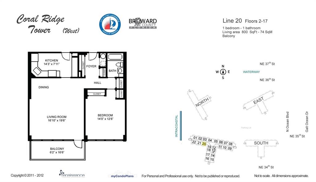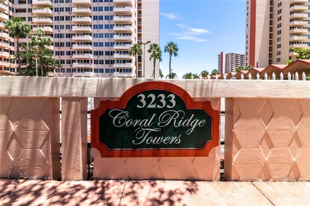 Coveted location with absolutely stunning Intracoastal, Pool & Garden view! Move in ready one bedroom one bathroom featuring an updated kitchen, large porcelain tile floors throughout the living spaces & ample closet space. Hurricane impact windows & door. Energy efficient & whisper quiet Central Air system w/ dual climate controls. Beautiful tropical landscaping w/ resort style 30x60 heated pool located on the Intracoastal. No Pets/Rentals/Lease. For more listings like this visit: CoralRidgeTowers.com