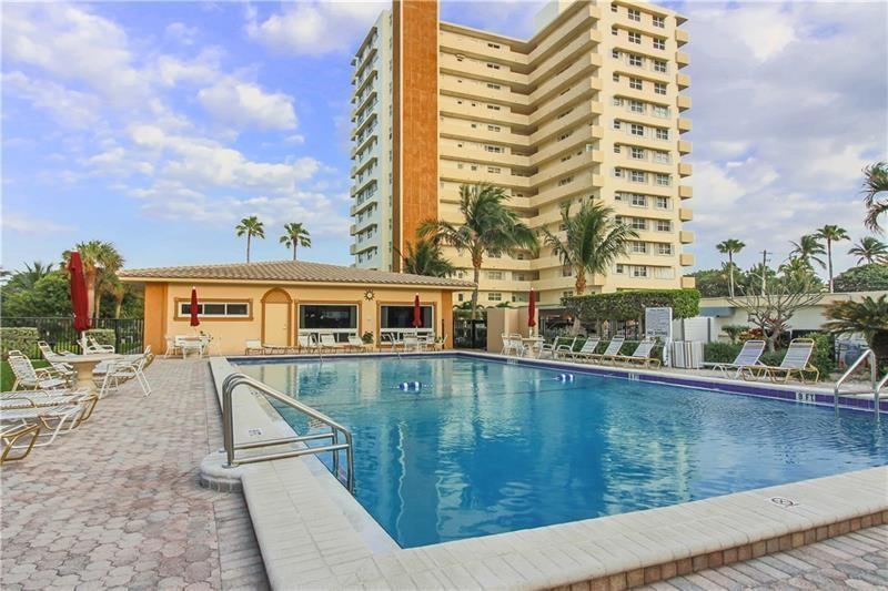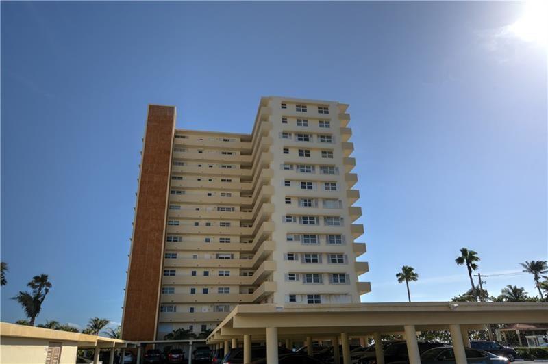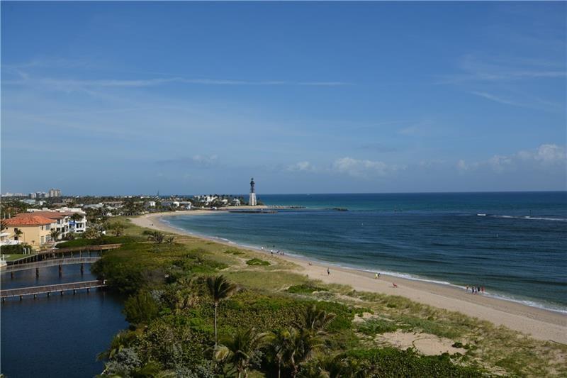 Stunning Direct ocean views including the Hillsboro Lighthouse Inlet from this 2/2 corner unit!! No obstruction of views, a very bright unit with lots of windows! Master bed includes direct ocean view, unit has Hurricane impact windows! Come and live in Paradise! Plenty of guest parking. Heated pool, shuffle board, putting green, bocce ball, socially active community. The lowest maintenance fees on ocean front, private beach access, well maintained gardens. Covered parking.