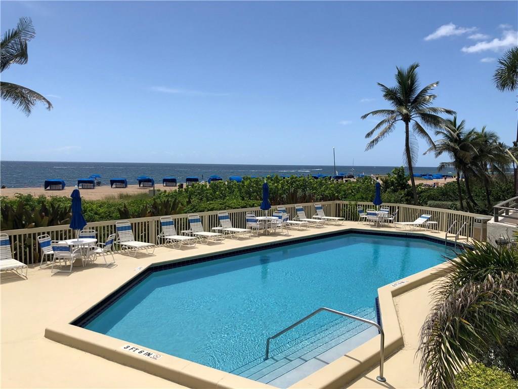 Direct Oceanfront and Beach access! Completely furnished 2 Bedroom/2 Bath Unit. Recently updated unit, quiet 46-unit building, covered and secure parking. Enjoy the pool (heated) which has direct access to the beach. Pets welcome under 20 pounds. Washer and Dryer in Unit.