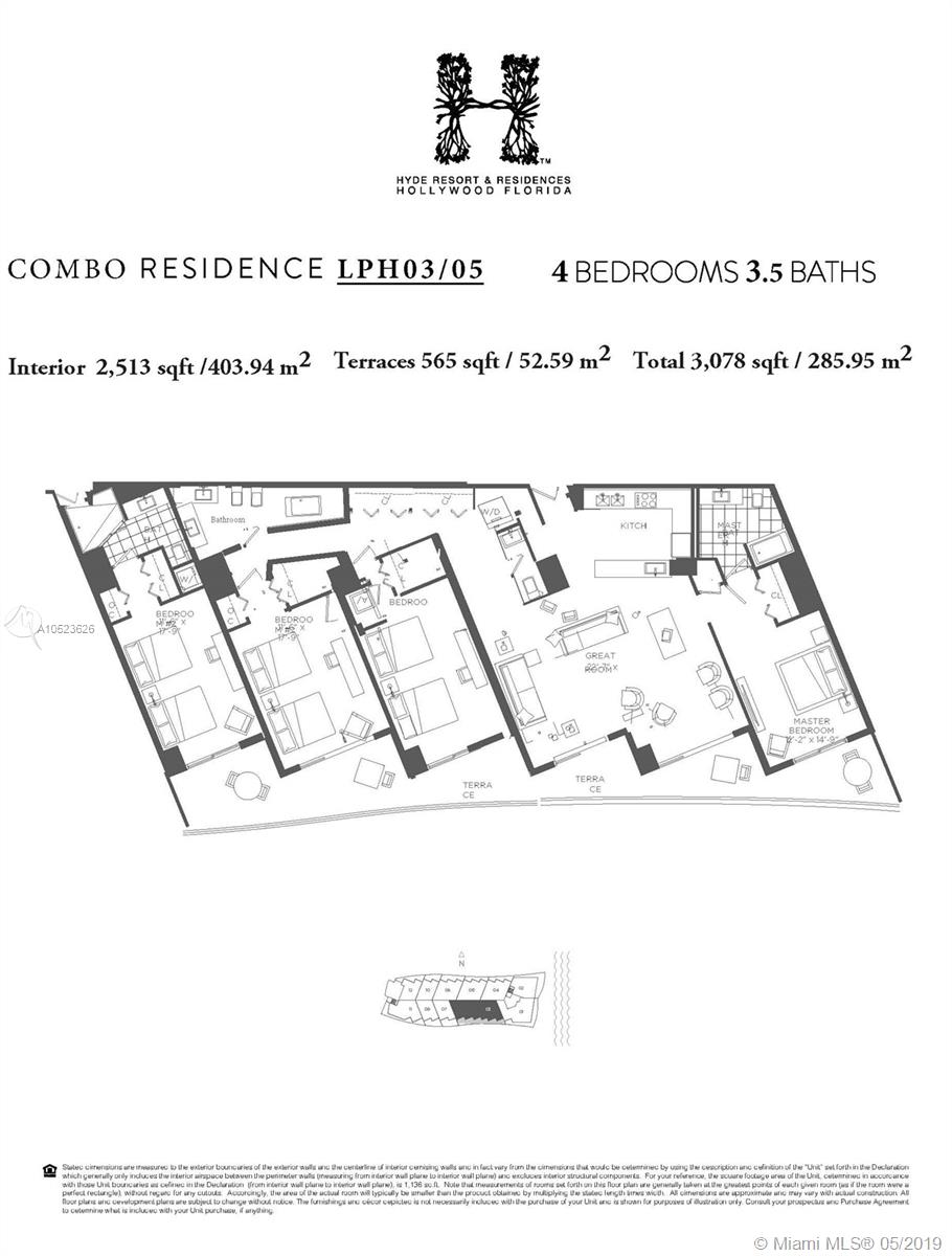 4/3.5 in the HYDE BEACH RESORT & RESIDENCE, Penthouse Beachfront/Ocean View, wide terrace, floor to ceiling sliding doors, 4 huge Bedroom, fully decorated by renowned Brazilian designer "Debora Aquiar" w/ upgraded package WOLF appliances & Expresso Coffee grinder, hottest building in Hollywood Beach. few minutes away from the Aventura Mall & Bal Harbor. Free membership to Hyde Beach Club, Personal Concierge, 2 restaurants, 2 infinity-edge ocean view pools, sundeck & private cabanas, fully-equipped Fitness Center, full-service Spa, Chaise Lounges with towel & umbrella service on the beach. Room Service, housekeeping, and laundry services. High-speed internet, INVESTOR DREAM currently rented @ $ 8,500 p/Month (1yr), or New Owner can cancel lease & rent on a daily basis at Airbnb to make x2 $