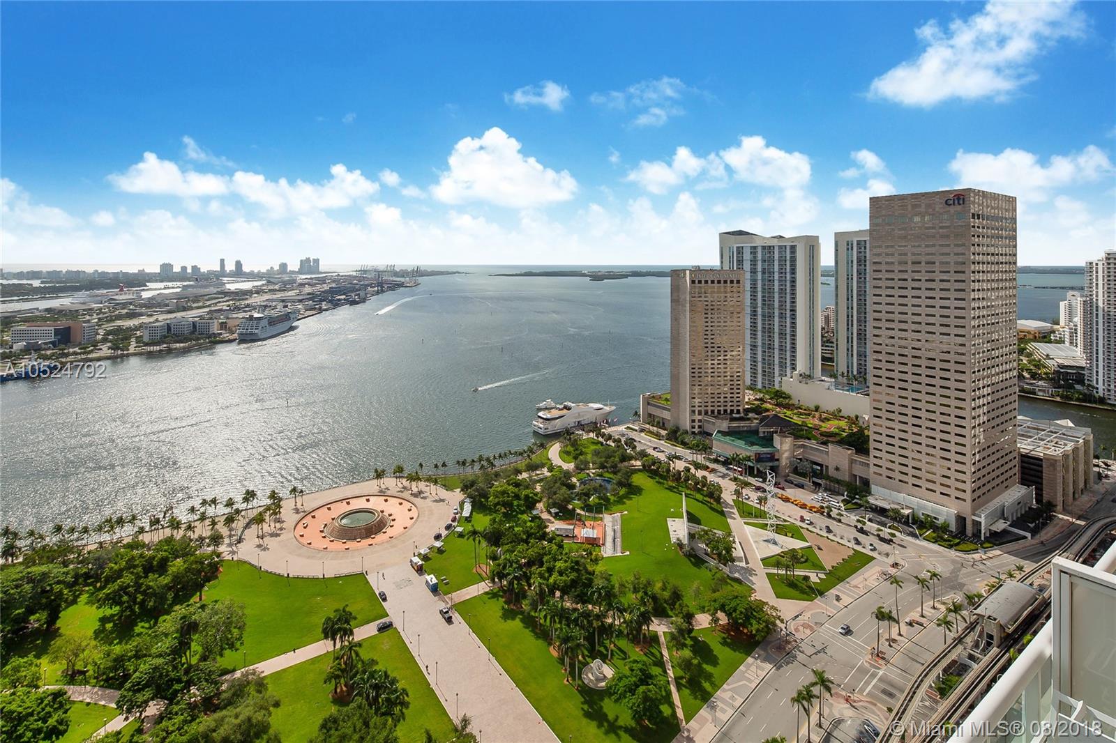 2 master bedrooms with private bathroom + Den area which was converted into 3rd bedroom with beautiful and modern sliding glass doors (Den also has closet and direct access to bathroom) dual sinks in both bathrooms, jacuzzi and shower separate, marble bathrooms, master bedroom has double walking closet, Laminated wood floors throughout. HUGE PRICE REDUCTION!!! BEST PRICE IN DOWNTOWN MIAMI WITH DIRECT OCEAN VIEW OF BISCAYNE BAY, PORT OF MIAMI, BAYFRONT PARK, BAYSIDE MARINA AND MARKET PLACE. NEW A/C INSTALLED ON FEB 2017. PLEASE SEE THE DRONE VIDEO, CLICK ON THE LINK BELLOW