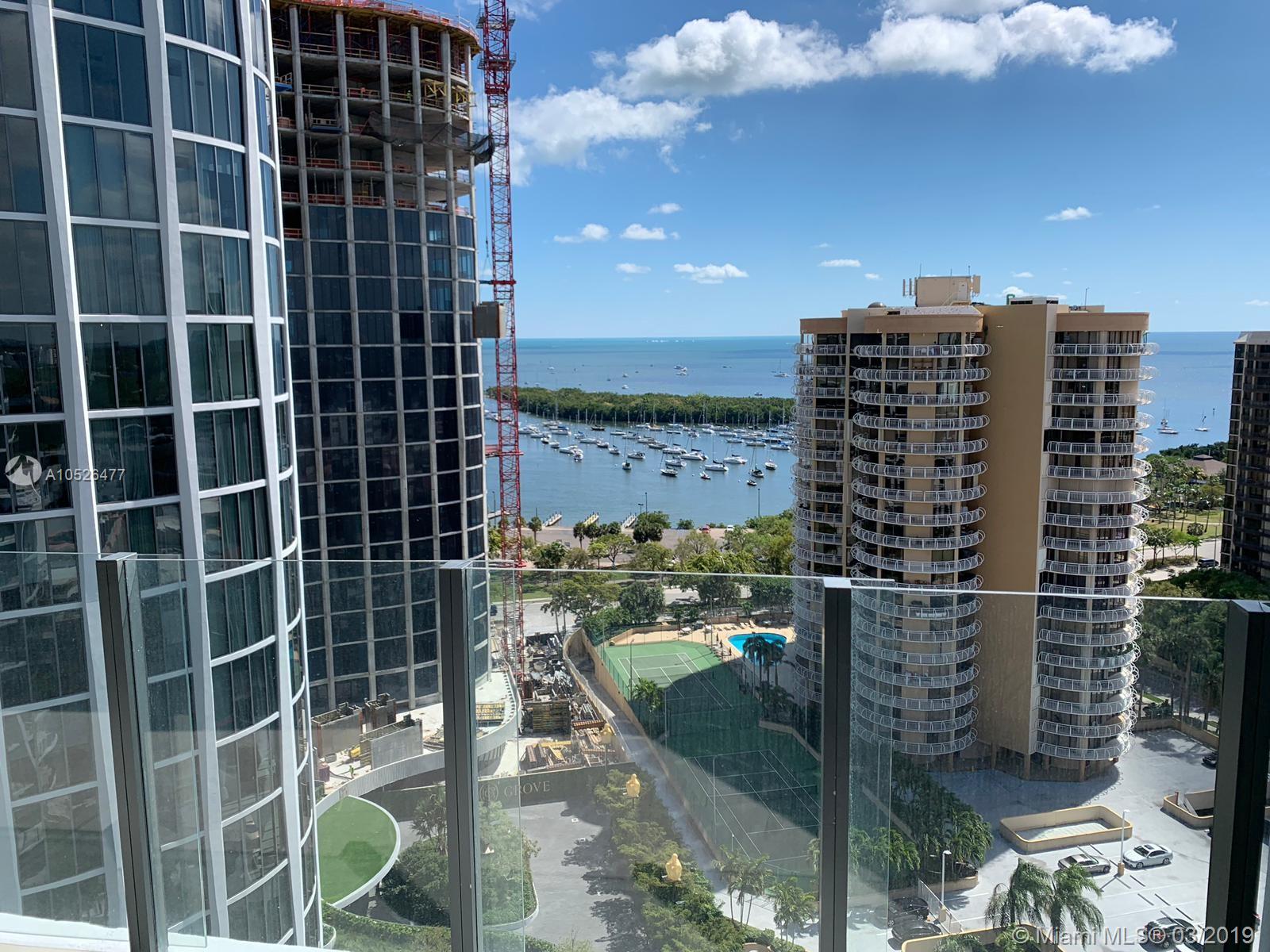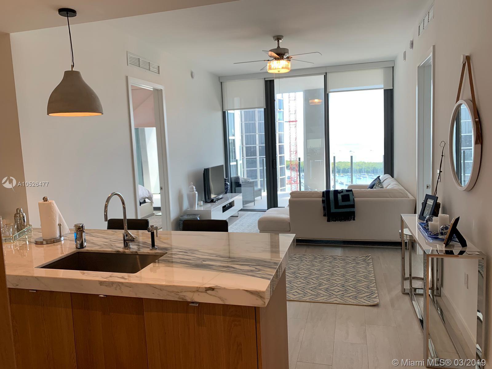 Line 02 has the best views of the whole Park Grove Residences. Directly looking at water and Marina. Be the first to use this lovely brand new apartment! 2/2 with separate dining room and living room! Dining room might be used as DEN. Tiles throughout. Top of the line appliances. Hurricane windows and doors. 9" CEILINGS! Luxury all around you. Come live in paradise. Amenities include sauna, steam room, spa center, children play area, pools, gym, etc. Tenant occupied till 10/09/2019