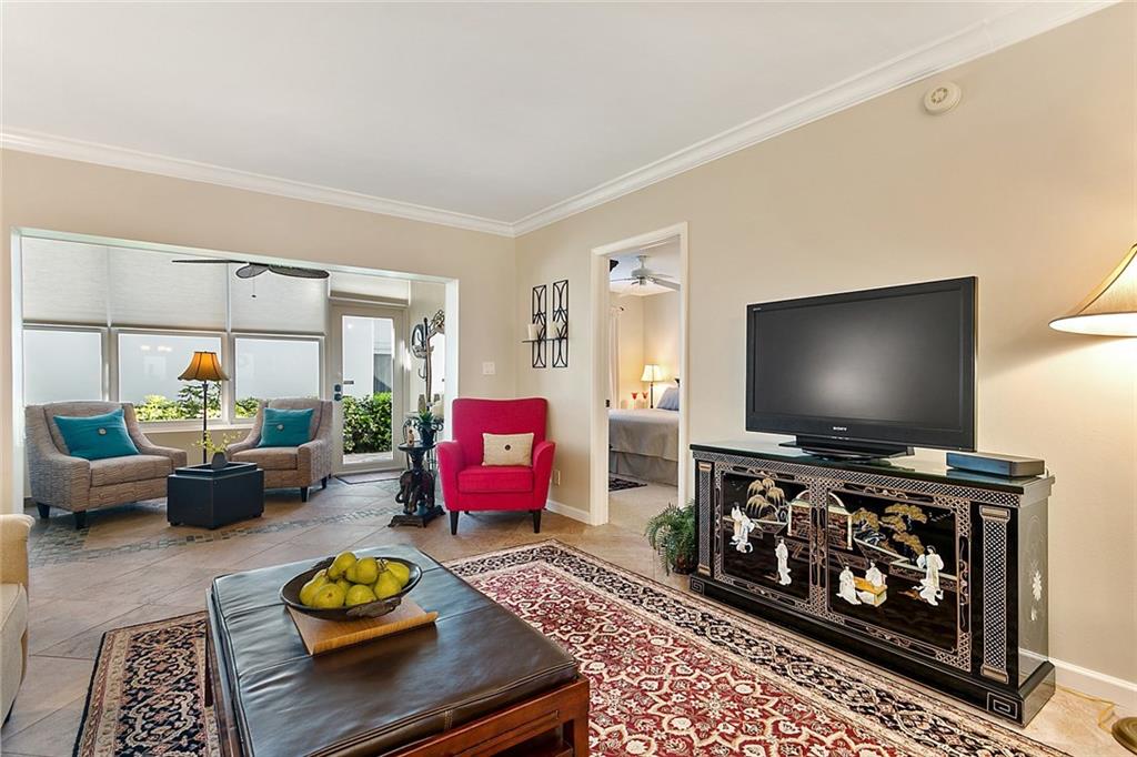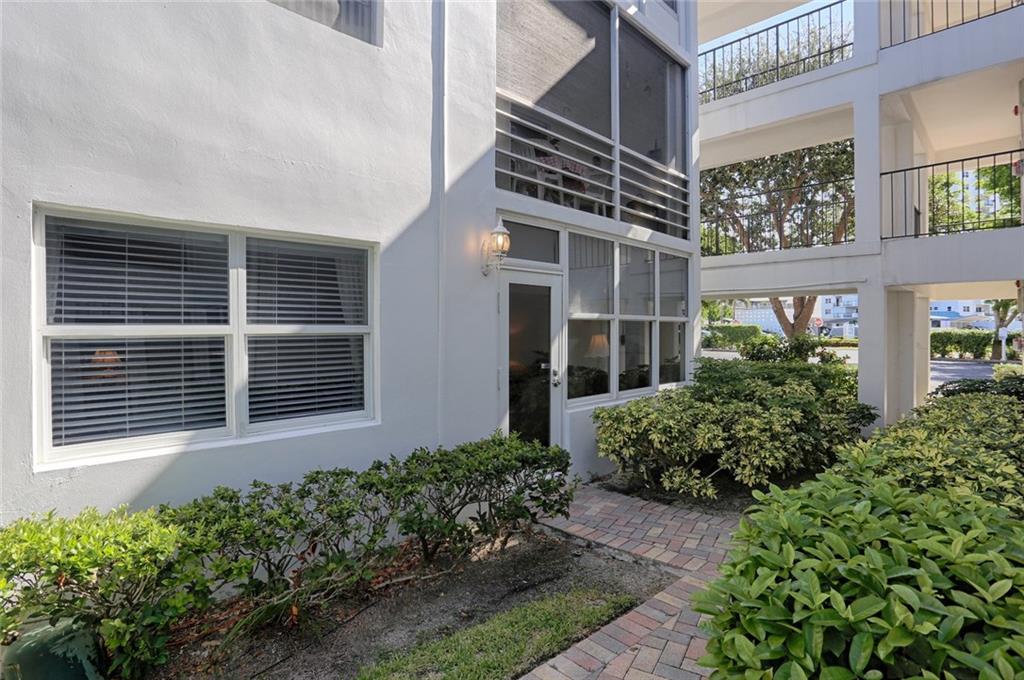 Charming, very well maintained 2/2 corner unit on 1st floor. Kitchen features granite tops and (like new) s/s appliances. The patio is enclosed (with hurricane impact windows/door) tiled and subtly screened. Furniture in master bedroom included in sale with sleep number mattress. Equipped with W/D combo in master bedroom closet. All windows and patio door are hurricane impact. Boutique building well maintained with low maintenance fees. INVESTORS: Rent 1st year, 12X per year. Pets 25lbs max.