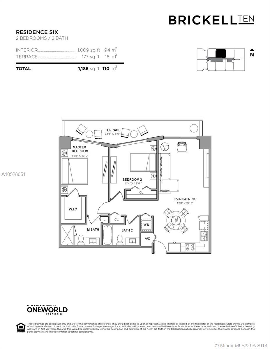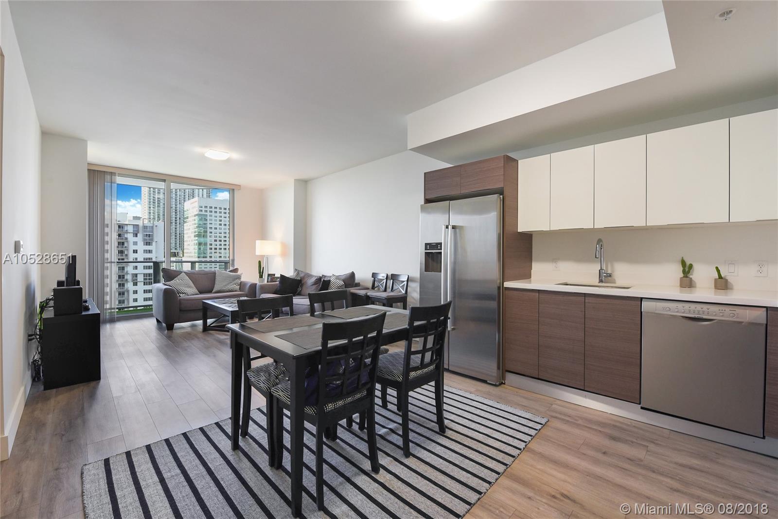 Modern 2 Bed/2 Bath unit in the newly-opened Brickell Ten condo building ideally located in the heart of Brickell, just steps from Mary Brickell Village and Brickell City Centre. This 1,009-SF unit offers an open-concept layout featuring wood-grained porcelain flooring, 9' ceilings, floor-to-ceiling sliding glass doors throughout, European-style kitchen with Italian cabinetry, Quartz countertops and Bosch stainless-steel appliances and an in-unit washer/dryer. This unit also features a spacious terrace with spectacular views of the Miami skyline. Brickell Ten boasts exceptional indoor/outdoor amenities including a swimming pool, lush gardens, club room, pool/billiards room, business center, kid's room, BBQ area, rooftop fitness center, spa, reflecting pool, sunset terrace and outdoor bar.