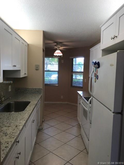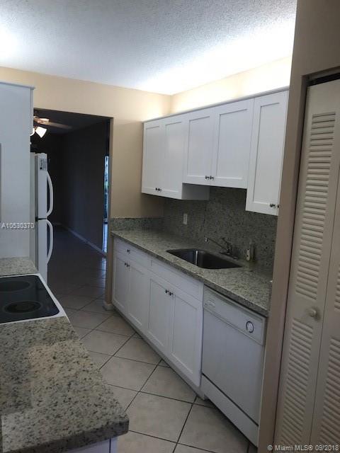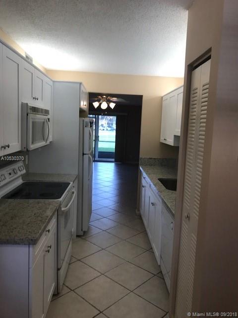 GREAT FIRST-FLOOR UNIT WITH TWO FULL BEDROOMS AND BATHS. NEWLY INSTALLED WHITE MATTE KITCHEN CABINETS WITH THICK GRANITE COUNTER TOPS, NEUTRAL TILE IN LIVING AREAS AND BAMBOO WOOD FLOORS IN THE BEDROOMS. WASHER/DRYER COMBO IN UNIT. BUILT-INS IN MASTER CLOSET. CEILING FANS. TRANQUIL GARDEN VIEW FROM THE GLASS-ENCLOSED BACK PORCH. WAITING FOR NEW OWNER'S EXTRA TOUCHES. CENTURY VILLAGE OFFERS GREAT AMENITIES INCLUDING A CLUBHOUSE WITH MANY ACTIVITIES, SWIMMING POOLS, EXERCISE ROOM, PARTY ROOM, COURTESY BUSES WITH SERVICE INSIDE THE COMPLEX AND OUTSIDE TO BUSINESSES AND STORES, EMERGENCY RESPONSE CALL BUTTON, AND OTHERS, TOO NUMEROUS TO MENTION. EASY TO SHOW, CALL AGENT FOR LOCK BOX CODE.