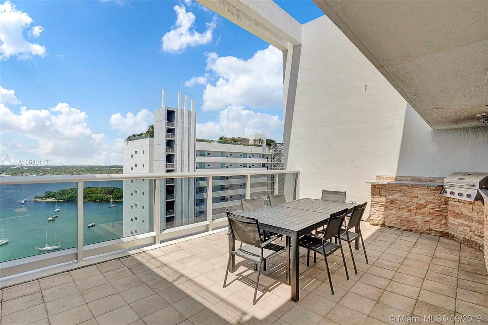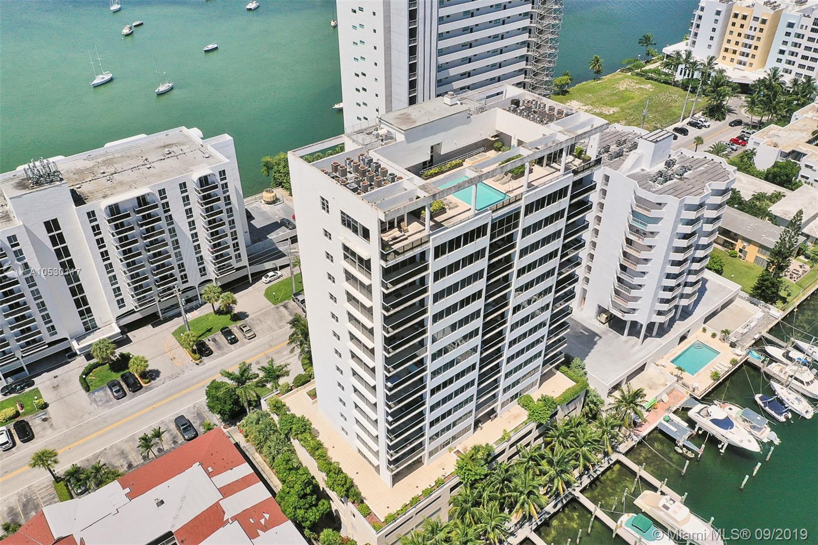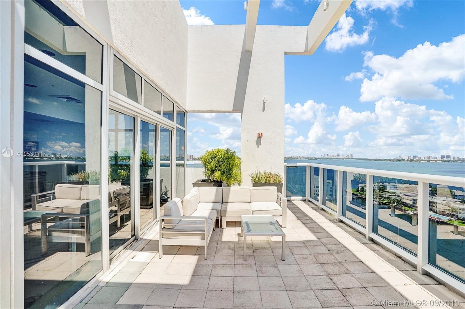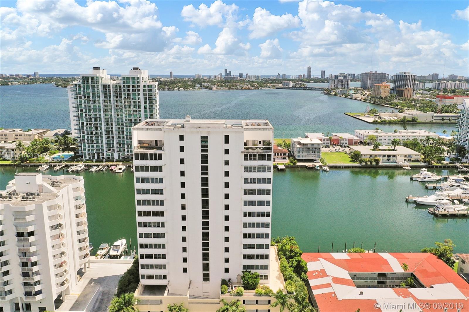 Updated, move-in ready condo in North Bay Village! Amazing 2 bedroom, 2 bathroom waterfront residence that features water views from every room. Large open, updated kitchen with breakfast bar, stainless steel appliances and granite counter tops. Large master bedroom with ensuite bathroom, separate shower and tub, and double sink. Washer/dryer in unit. This waterfront building only has 3 residences per floor and offers great amenities - spectacular rooftop top heated pool and exercise room, summer kitchen/bbq area, indoor kitchen, and 360 views of the bay/city. Unit comes with 2 garage parking spaces. Easy to show!