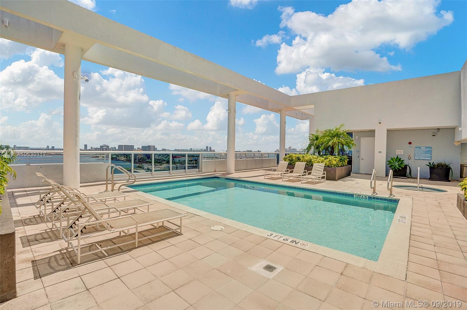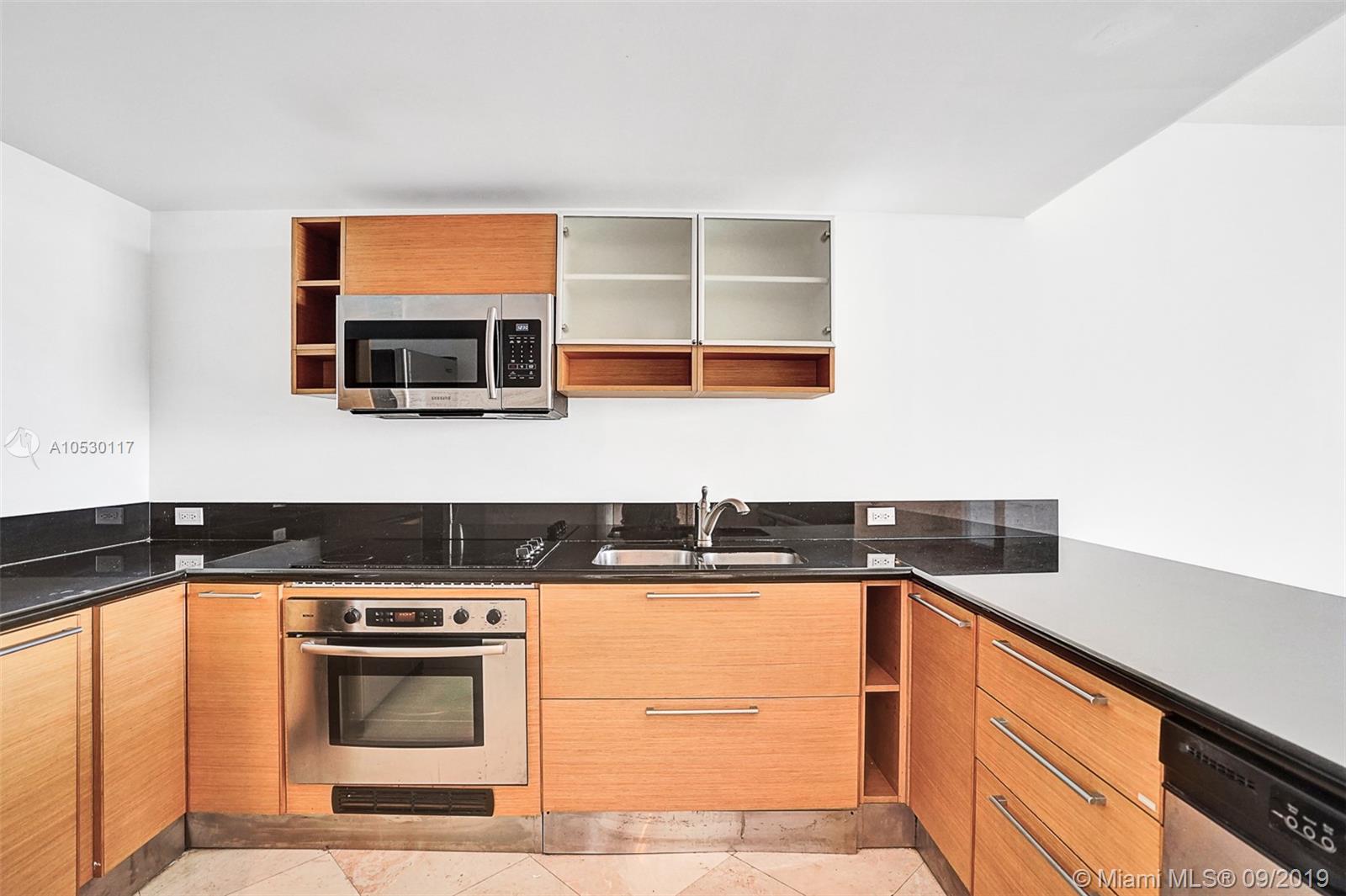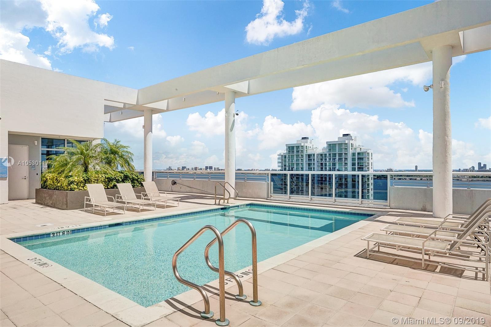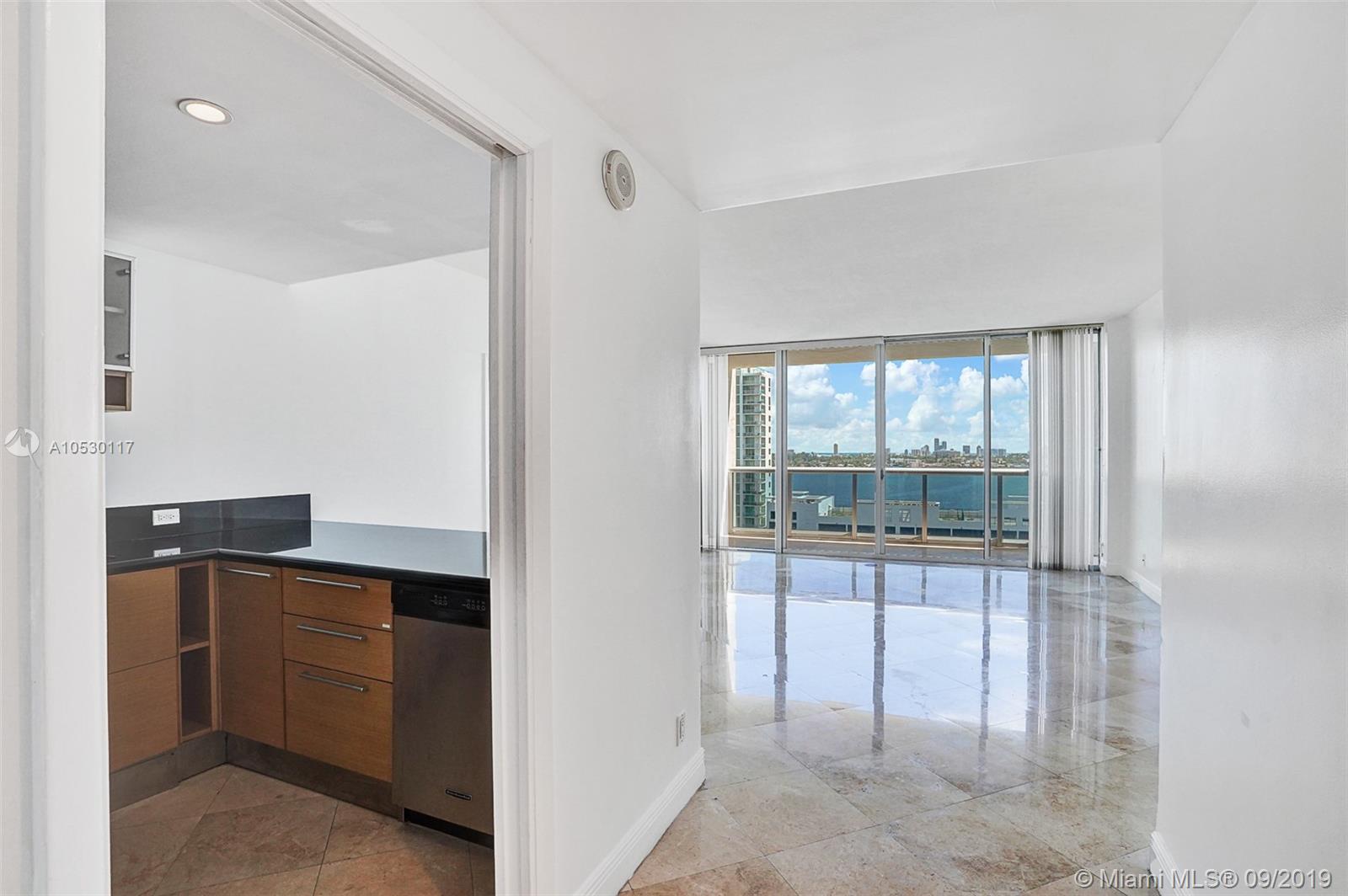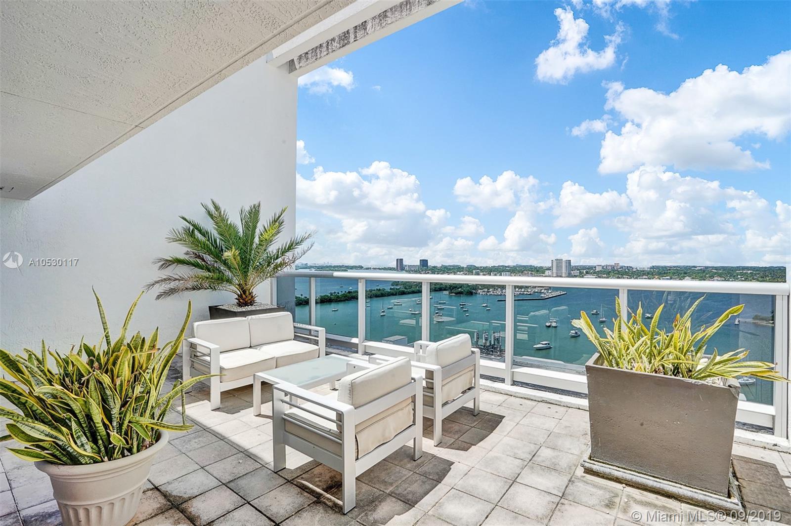 Updated, move-in ready condo in North Bay Village! Amazing 2 bedroom, 2 bathroom waterfront residence that features water views from every room. Large open, updated kitchen with breakfast bar, stainless steel appliances and granite counter tops. Large master bedroom with ensuite bathroom, separate shower and tub, and double sink. Washer/dryer in unit. This waterfront building only has 3 residences per floor and offers great amenities - spectacular rooftop top heated pool and exercise room, summer kitchen/bbq area, indoor kitchen, and 360 views of the bay/city. Unit comes with 2 garage parking spaces. Easy to show!