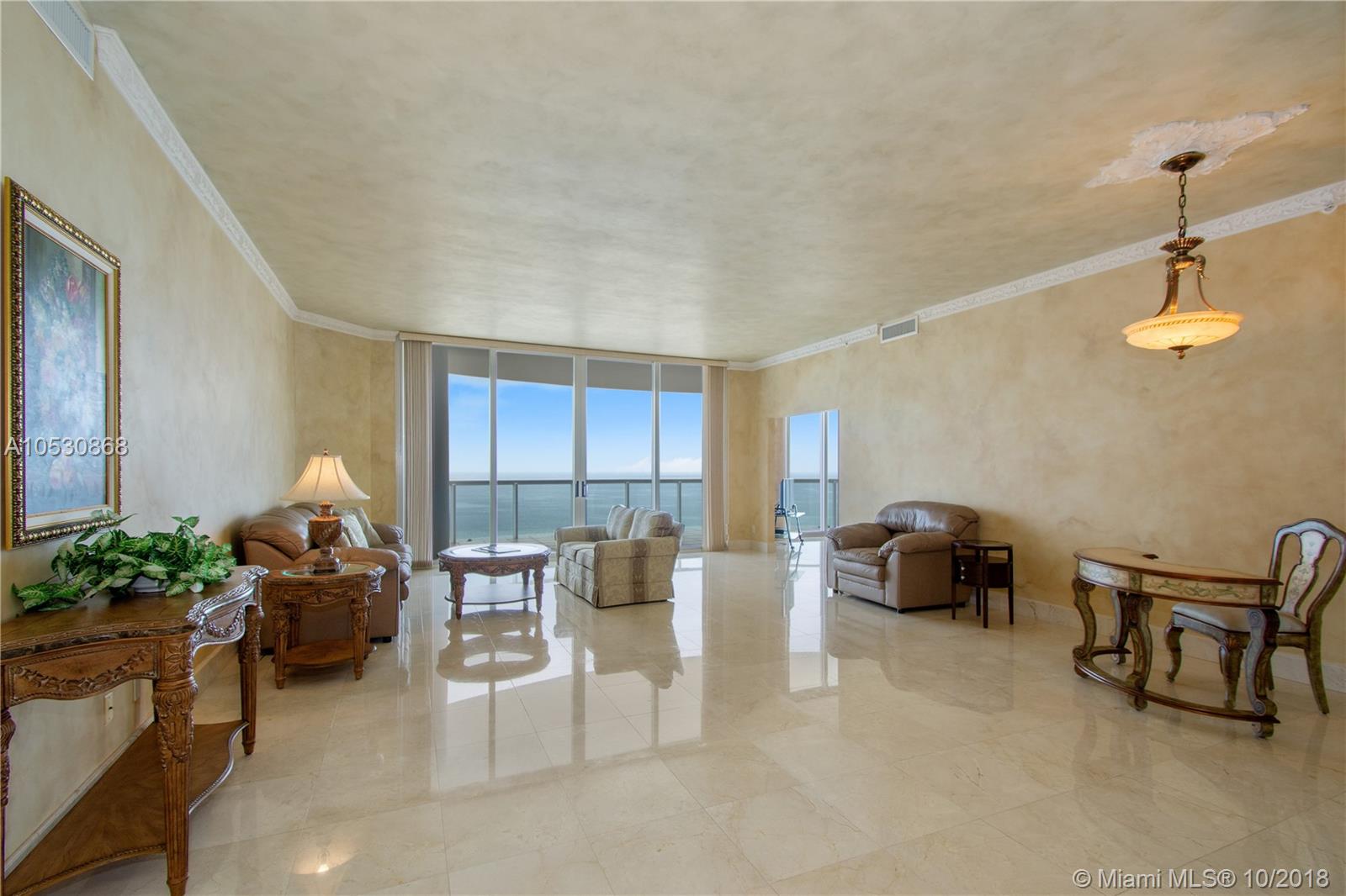 CORNER PENTHOUSE EXTRAORDINAIRE WITH HIGH CEILINGS! WOW! ENTER THROUGH PRIVATE ELEVATOR FOYER AND AS SOON AS YOU OPEN THE DOUBLE DOOR YOU SEE THE MOST AMAZING DIRECT OCEAN VIEWS OVER GOLDEN BEACH TO TAKE YOUR BREATH AWAY. OVERSIZED WRAP TERRACES FROM SOUTHEAST CORNER. SUN RISES FROM THE SEA IN LIVING ROOM 180° VIEW + 687 SF BALCONY FOR THE PENTHOUSE. MOST DESIRABLE 3 BED 3.5 BATH LINE IN FABULOUS ATLANTIC III. ST OF THE ART OPEN CUSTOM KITCHEN WITH TOP OF THE LINE APPLIANCES - SUBZERO REFRIGERATOR. THE FINEST FINISHES INCLUDE MARBLE FLOOR, CUSTOM LIGHTING. LARGE FLOOR PLAN WITH SPLIT BEDROOM PLAN. MASTER SUITE HAS A LARGE WALK-IN CLOSET. FULL SERVICE BUILDING, CONCIERGE, VALET, ST OF THE ART FULL SERVICE SPA (SALON, HEALTH CLUB, CAFE). TENNIS COURTS, MULTI-ACRE GROUNDS W/ 3 POOLS.