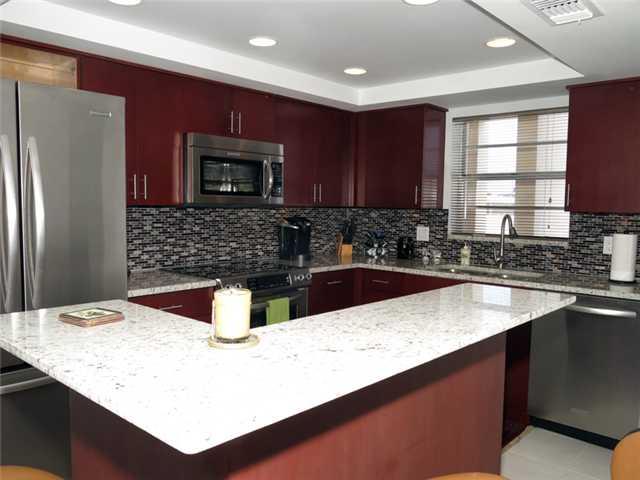 Newer remodel. Large 2/1/1. Spectacular open floor plan kitchen with island. Kitchenaid stainless appliances, granite counters, glass tile backsplash, cherry wood cabinets, recessed lighting in kitchen. New impact glass windows and slider. Jack/Jill shower with glass tile, rain head plus shower wand in oversized frameless glass enclosure. Complete closet build outs in walk ins for both bedrooms. 13 foot wide bay window offers serene canal views in famous Coral Ridge. Walk to restaurants and beach.