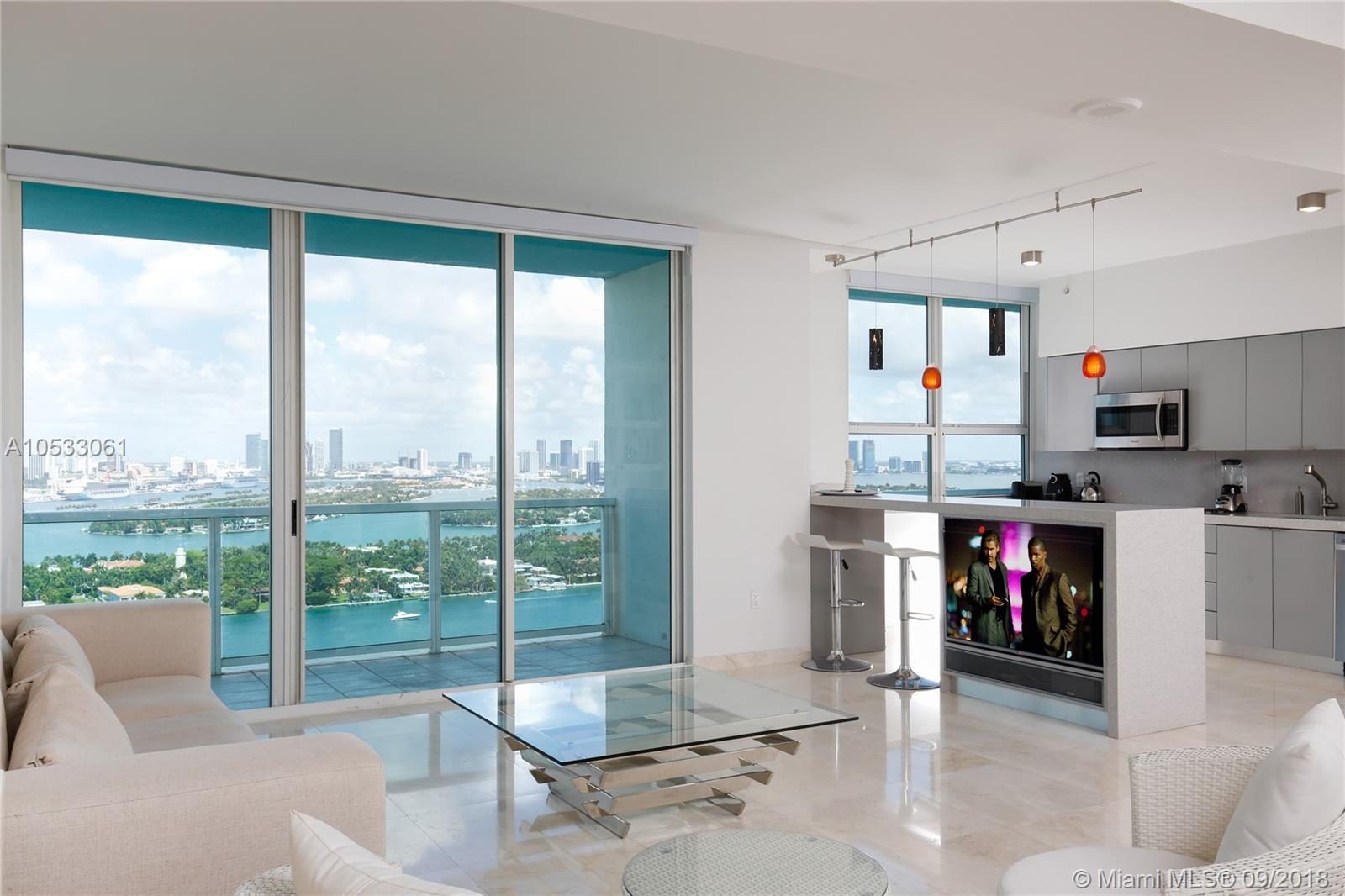 RARELY AVAILABLE PENTHOUSE AT THE FLORIDIAN SOUTH BEACH , 3 BALCONIES FACING THE MOST BEAUTIFUL VIEWS OF THE MIAMI SKYLINE. FLOOR TO CEILING WINDOWS. COMPLETELY RENOVATED WITH TOP OF THE LINES FINISHES. PANORAMIC BAY VIEWS FROM EVERY ROOM. BIG MASTER SUITE AND 1 GUEST BEDROOM, 2 FULL BATHROOMS. ELECTRIC BLINDS. BUILDING OFFERS 5 STAR HOTEL STYLE AMENiTIES: 2 SWIMMING POOLS , JACUZZI, FITNESS CENTER, TENNIS AND BASKETBALL COURTS, SPA, BOAT DOCK, CONFERENCE ROOM, PRIVATE OFFICES, BBQ, FOOD MARKET, OUTSIDE KITCHEN , SNACK BAR, GAZEBO , VALET PARKING AND 1T ULTRA FAST INTERNET INCL. DON'T MISS THIS UNIQUE OPPORTUNITY!! 2 PARKING SPACES INCLUDED