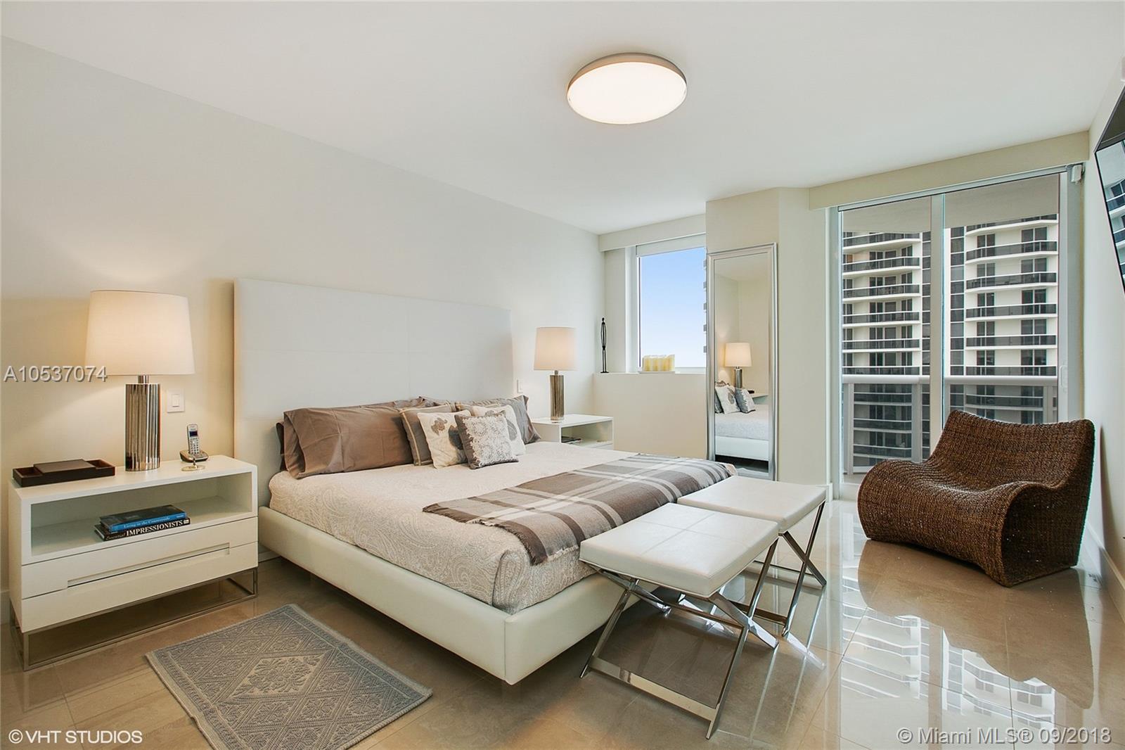 Elegant & completely renovated 3 bedroom & 3 bath direct oceanfront residence with mesmerizing views. Features include: 24 X 24 Italian marble floors throughout, electric shades, black out in bedrooms, surround sound, smart house, expansive glass windows, 2 large terraces, exquisite lighting fixtures. The Master Suite tastefully decorated. Spacious custom built walk-in closet, fabulous master bath with custom built walk-in closet & redesigned master bath. Open kitchen with Italian cabinetry opens to a large living & dining room area. The kitchen outfitted with high end appliances. The building boasts 2 lighted Tennis Courts, Club House with Top of the line equipment, sauna and steam rooms, salon, beach services, pool with cascade, children area, 24 hours valet and security, Marina & more.