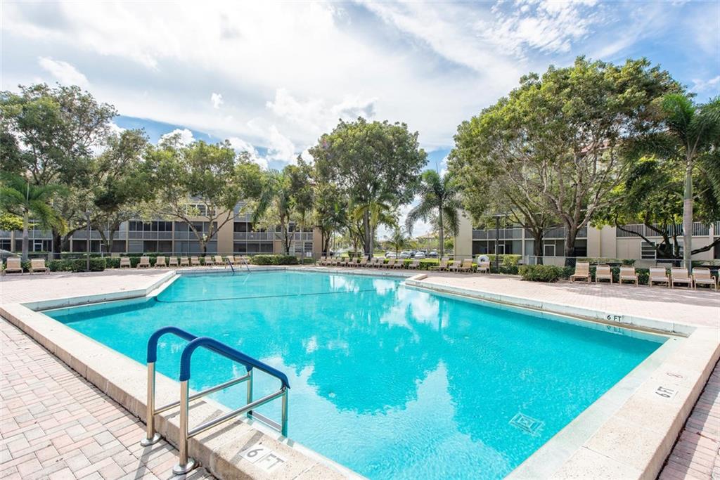 Enjoy living in this prestigious and well-known adult (55+) community of Century Village in Pembroke Pines. Fantastic views from your balcony that includes the golf course and romantic sunsets over the lake. Very affordable one bedroom, one bath condo located close to the elevator and laundry room. This unit has a separate storage room and a new refrigerator. The community has excellent amenities, clubhouse, several great pools, heated pools, golf course, tennis, library, weekly entertainment, dances and movies, courtesy bus, and 24 hours security patrol. Alarm in the unit for medical and other emergencies. Enjoy resort- like living!