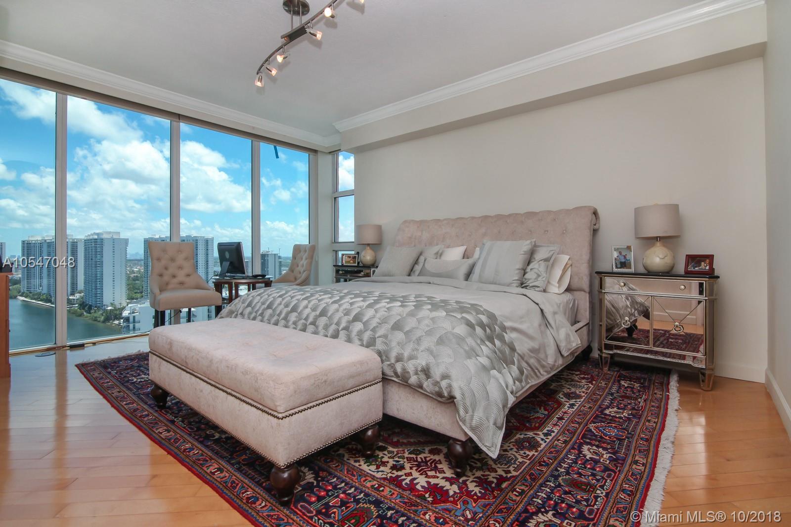 HUGE PRICE REDUCTION!! Amazing, furnished and finished 3 bedroom 2.5 bath, updated unit with Brand New Kitchen, marble and hardwood floors. All New Appliances, never been used. Kitchen boasts New White Quartz counter tops, all new kitchen cabinets, built in wall oven and microwave. Tons of storage. New Dining room table and chairs. Huge walk in closets, New tank-less hot water heater and New AC system. Electric blinds in the living room. This unit has a large balcony facing South with beautiful water views from the South and Golf Course views from the North. Semi private elevators with only two units on this floor. Very quiet and private. Turn key unit on a very high floor, all is new.