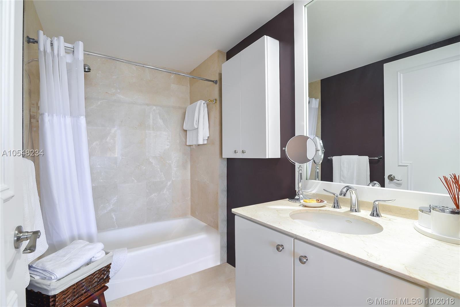 Panoramic Direct Ocean and Bay views ! Totally renovated flow through 2 bedroom plus a den/ 2.5 Bath apartment! Top of the line kitchen cabinets & appliances: Bosch oven & dishwasher. Samsung wifi radio refrigerator. Lots of built in storage & closets, 160 bottle wine cooler with wall unit, designer front door, top technology washer & dryer, marble & porcelain floors throughout. Sunrise & Sunset terraces!