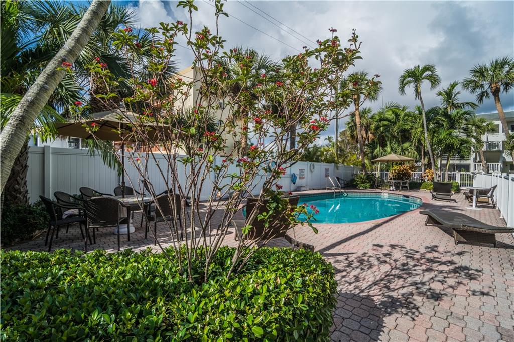 Beautifully 2nd floor apartment just steps to beach! Located on A1A. Amazing garden, pool and canal view with intercoastal access and community boat dock. Ceramic tile floor, very clean and spacious. Walk in closet in bedroom and hall closet with plenty of storage. Unit has hurricane impact window and accordion storm shutter system for patio. Secure complex including laundry facilities, elevator, reserved parking spot and ample guest parking. Water, trash & land lease are included in the Association fee.