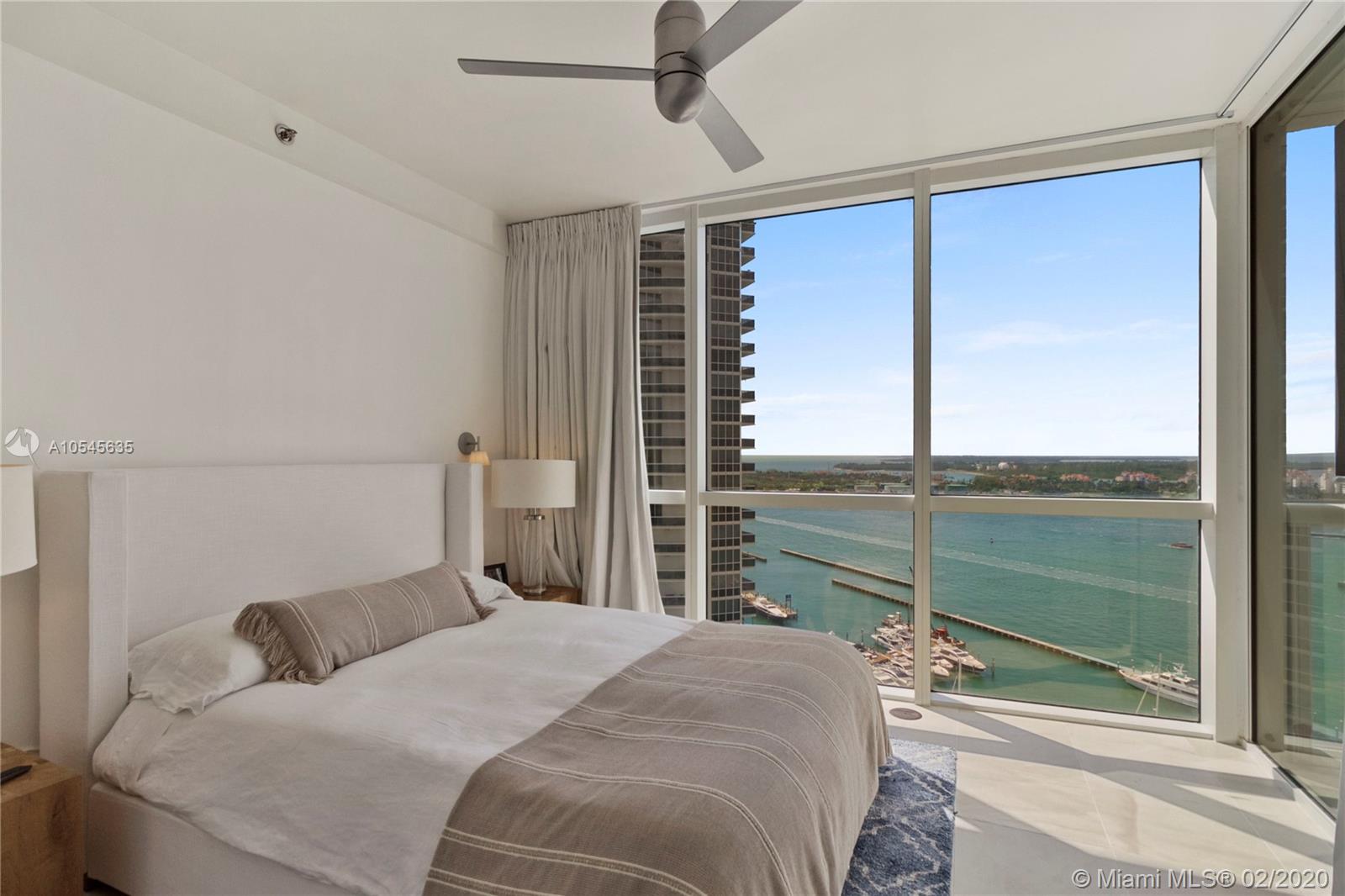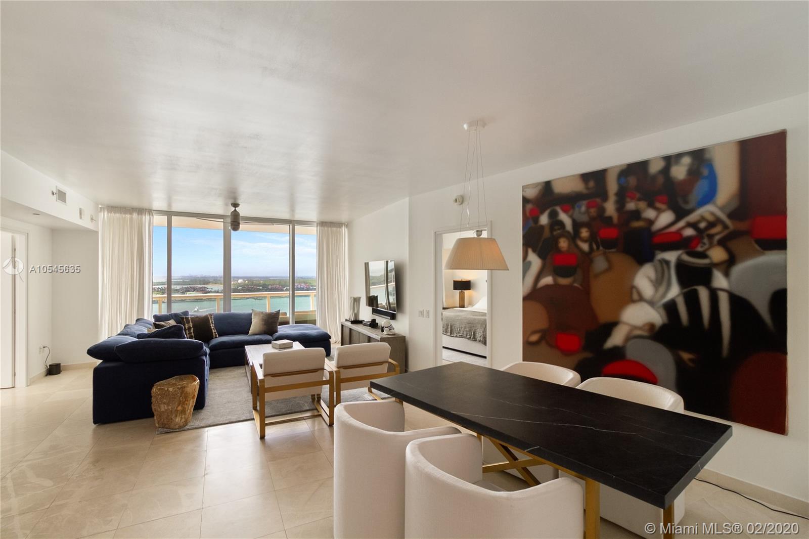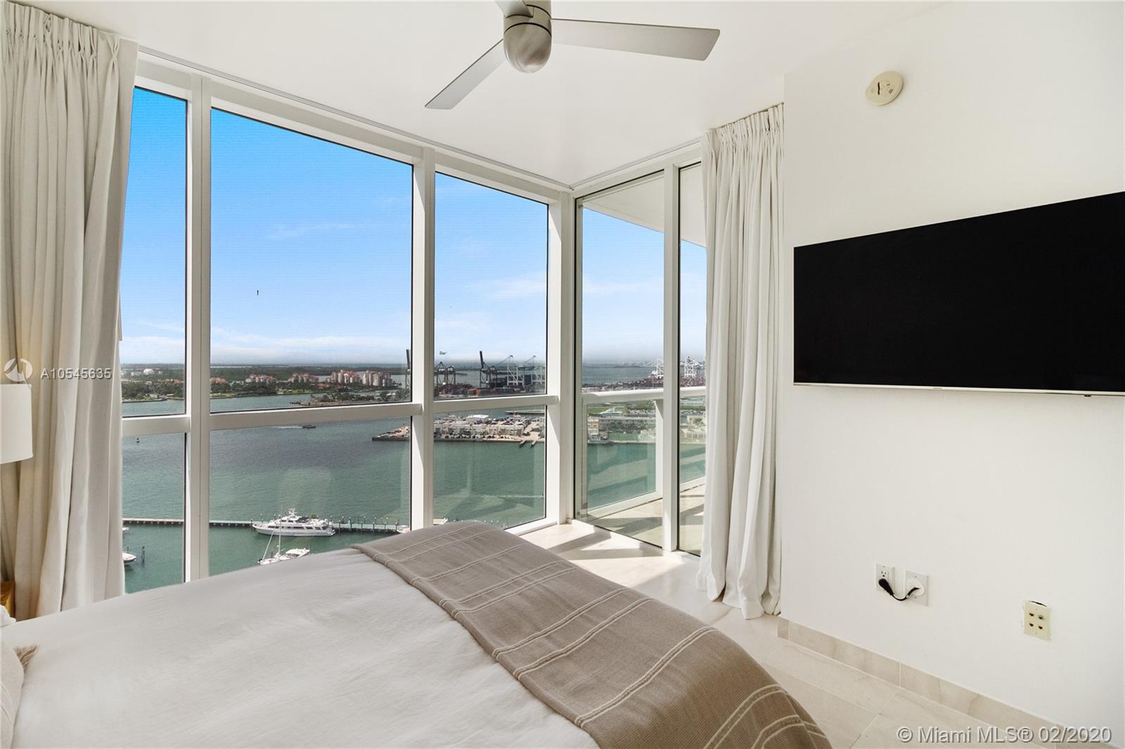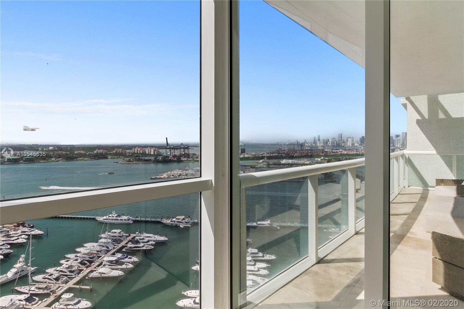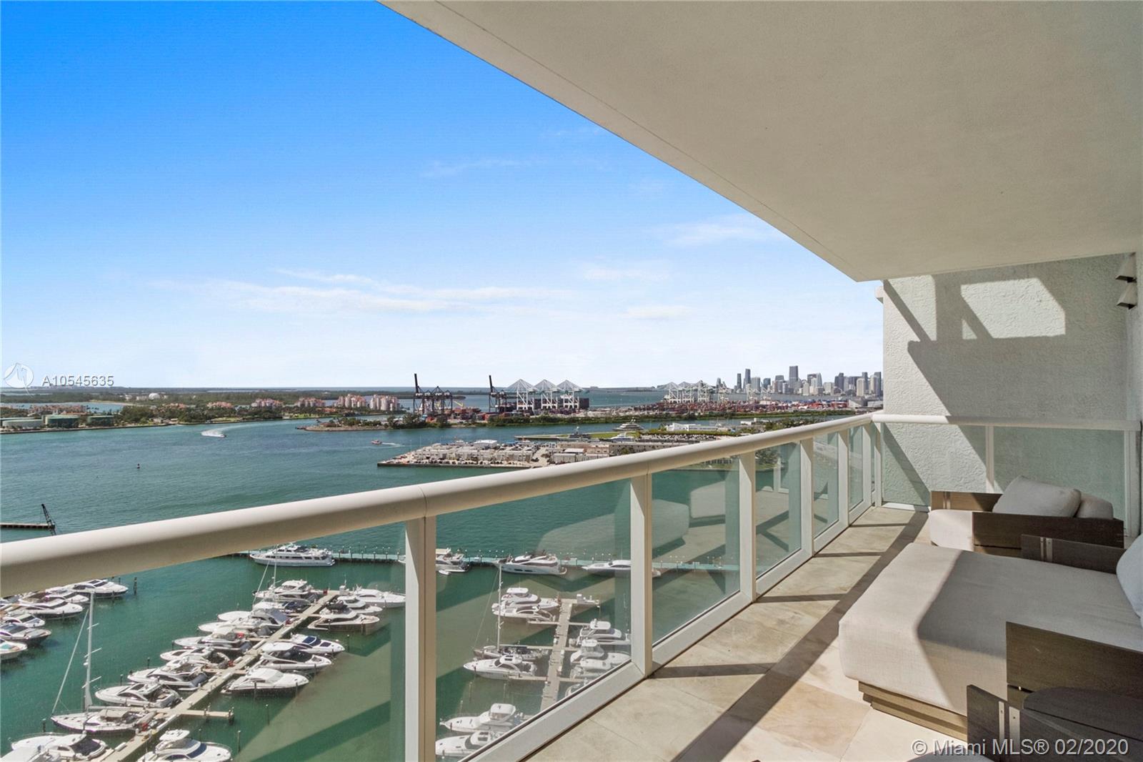 Amazing views of Biscayne Bay, Fisher Island, Downtown, Marina and Port from this split plan 2 bed/2.5 bath + DEN at the Icon South Beach. The highly desirable floorplan includes a den, which can be utilized as a third bedroom, office, study or family room. Marble floors open kitchen with Miele and Sub Zero appliances, separate laundry. Large Master Suite with oversize tub and marble floors. The huge balcony is accessible from every room. The Icon designed by Philippe Starck features a grand lobby with 1st class amenities. Newly renovated lap pool, upper pool, spa, gym, restaurant, library, security, concierge and valet parking.