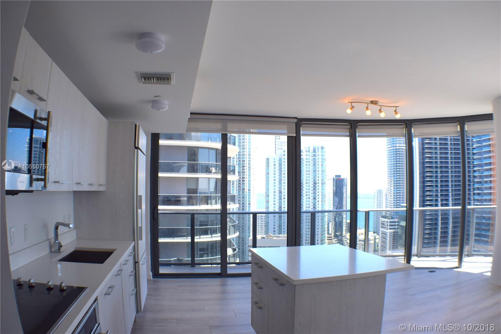 Spectacular bay views from this unit to the bay and to Brickell City Center and Mary Brickell Village. The views from this unit are amazing from both bedrooms and the living area. Unit comes with an island kitchen which is an upgrade, built in closets and solar shades in living room and blackouts in the bedrooms. Features imported wood-like porcelain flooring.