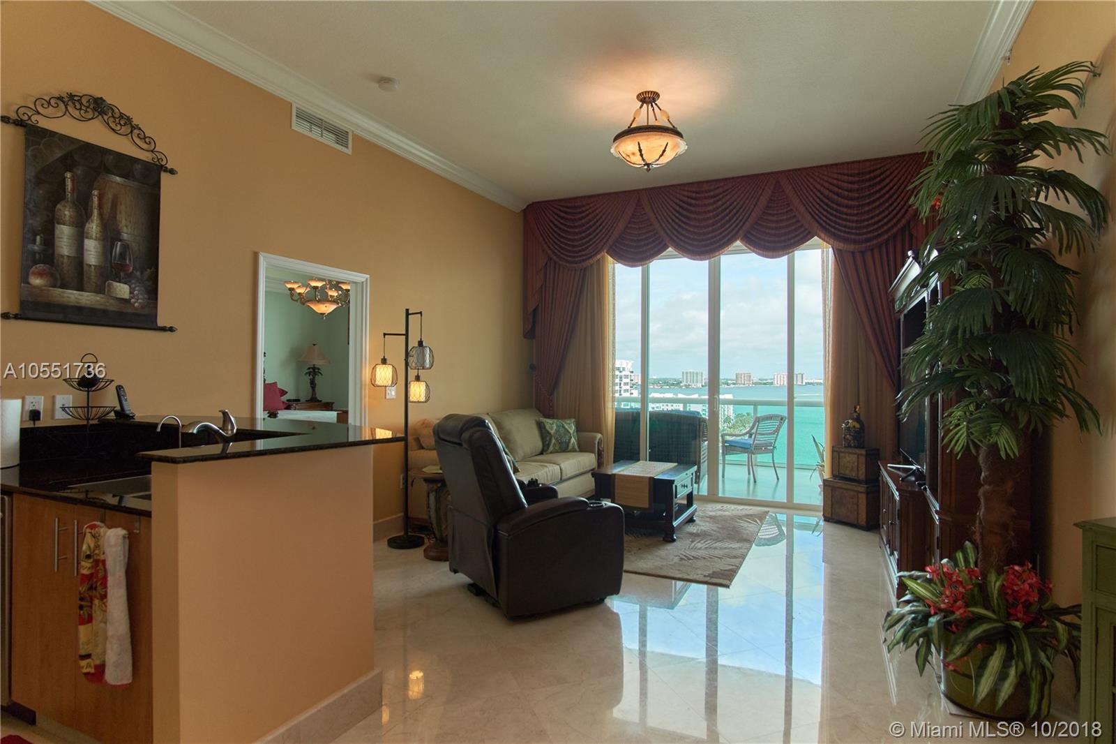Spectacular penthouse at 360 condominium. This spacious condo boasts 10' ceilings, beautiful unobstructed bay and city views, only PH that has balcony access from the 2nd bedroom. PH01 is the largest two bedroom floor plan in 360 and has an expansive, wide balcony. Marble floors throughout, a Euro style open kitchen with GE Profile appls., brand new washer & dryer en suite, brand new AC unit and purified water system and custom made closets. This unit is in impeccable ready to move in condition and the best PH available in building A. 360 offers a private marina, 24 hr. security & concierge, free valet parking, fitness center, tropical pool area, club-room and is pet friendly. This PH will not last!