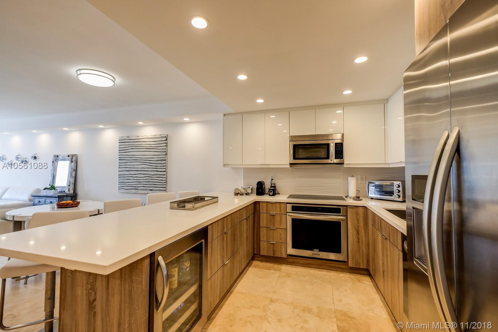 Beautiful completely renovated unit! Unbeatable location across from beach and next to Heritage Park. Features include imported travertine floors and bathrooms, custom kitchen with built in appliances, custom bathroom cabinetry with floating mirrors, built in closets, 100% LED lighting. Two A/C units for separate temperatures in Living Room and Master. All high efficiency appliances and LED lights for super low electric bill! Solid wood doors, tubing to hide TV cables, hidden router/electronics. Building is one of the very few that ALLOWS SHORT TERM RENTALS so unit is great investment that can generate great income. Live in the unit or use as a vacation condo and AirBNB it when you're not using it.