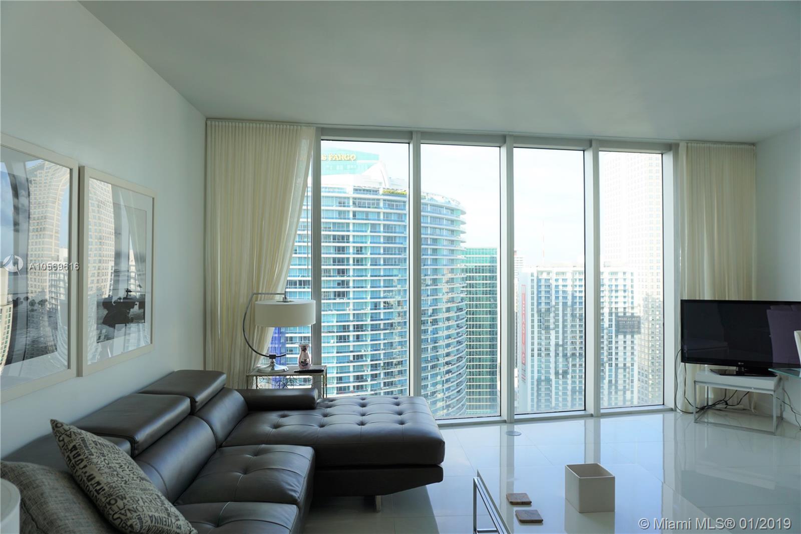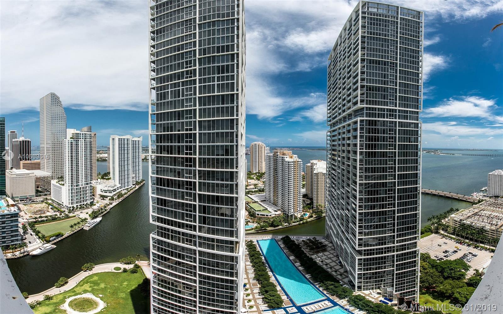 Corner unit 2bed 2bath, 1,347 sqft. Walls of glass surrounded by the spectacular bay views from all spaces. Appliances Sub Zero & Mielle. Cable, Internet, 24 hrs Valet Parking & front desk. Spa quality master bath w/lavish jacuzzi jet tub and stand up porcelain shower enclosed in glass. Walking distance to Brickell City Center, the shops at Mary Brickell Village & Whole Foods Market.