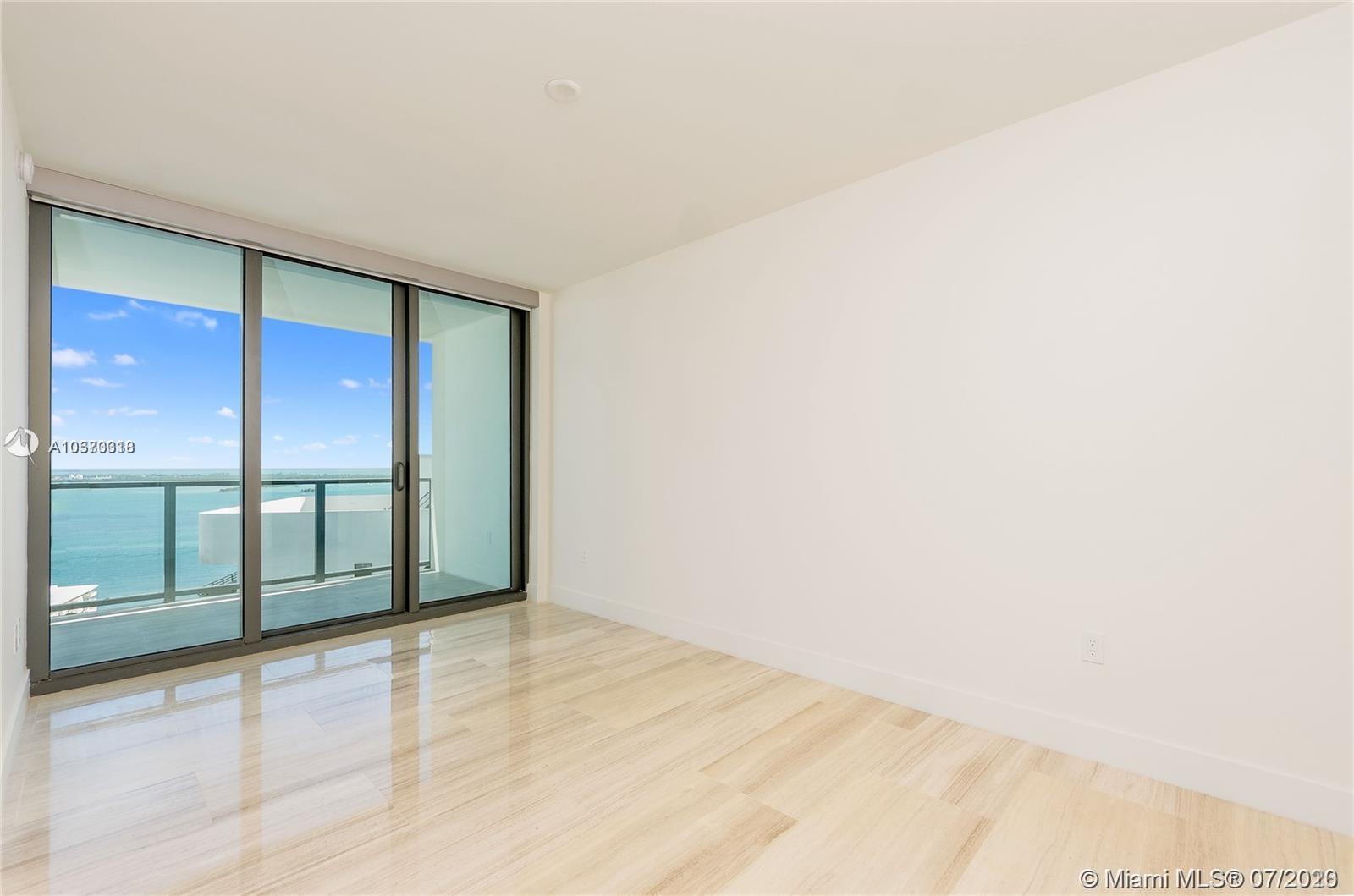 Freshly developed 2BR/2.5BA corner unit w/spectacular water and city views. Flow thru marble flooring, custom closet in master bedroom, and expansive terraces with summer kitchen. SMART IHOME system (integrated audio speakers & video / lighting system) and Bluetooth/fob controlled front door (no keys required). Eco-friendly kitchen with Italian glass cabinetry, marble countertops and top-of the line appliances. Infinity-edge pool w/resort-style poolside food & beverage services, gym and spa deck w/ panoramic views of Biscayne Bay and Downtown Miami. 24/7 concierge, valet, pet walker, complementary bikes, nanny service and much more.