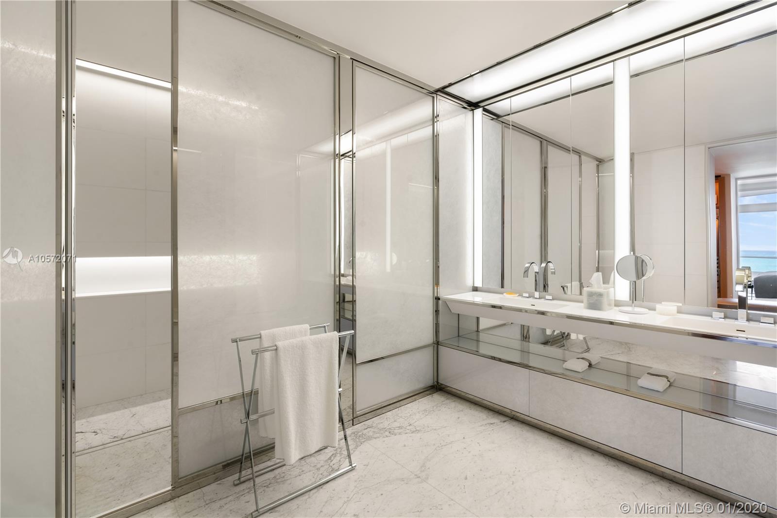 Designed by Foster+Partners, Faena House is the epitome of true indoor/outdoor living, designed to seamlessly connect with its oceanfront setting. Designed and furnished by Christian Liaigre, this magnificent 4 bedroom + office and 5.5 bath turn-key residence, spanning 5,466 sq. ft., offers extensive custom upgrades. Venetian plaster walls and ceiling, a media room with a built-in wet-bar, a kitchen by Molteni with Miele appliances, terrazzo floors throughout, bathrooms by Permasteelisa, and an upgraded Crestron Home Automation System complement the unit. A continuous balcony wraps around the apartment, extending the living space outside. Residents have access to the amenities of the adjacent five-star Faena Hotel. The hotel service and amenities are brought to your personal refuge.