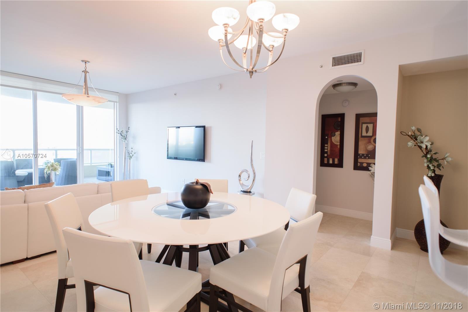 Open, spacious and modern, this 2 bedroom, 3 bath plus den ocean view apartment is a unique find. Designed with clean, contemporary lines and neutral interior finishes, the expansive 1,750 square foot luxury residence offers four parking spaces - a rare feature. Fully renovated, the fifth floor condo also includes a modern kitchen with granite countertops, stainless steel appliances and decorative lighting, a breakfast area, high ceilings, marble floors, crown moldings, laundry room and walk-in closets in all bedrooms. The desirable floor plan further complements the amenities, with a living room, dining room and oversized balcony with gorgeous ocean views. Aventura Marina is an impeccably maintained gated complex with full clubhouse and a 24/7 accommodating front desk staff.