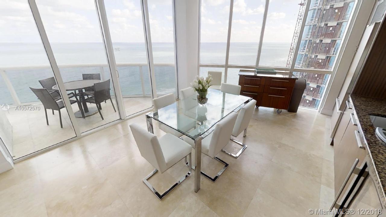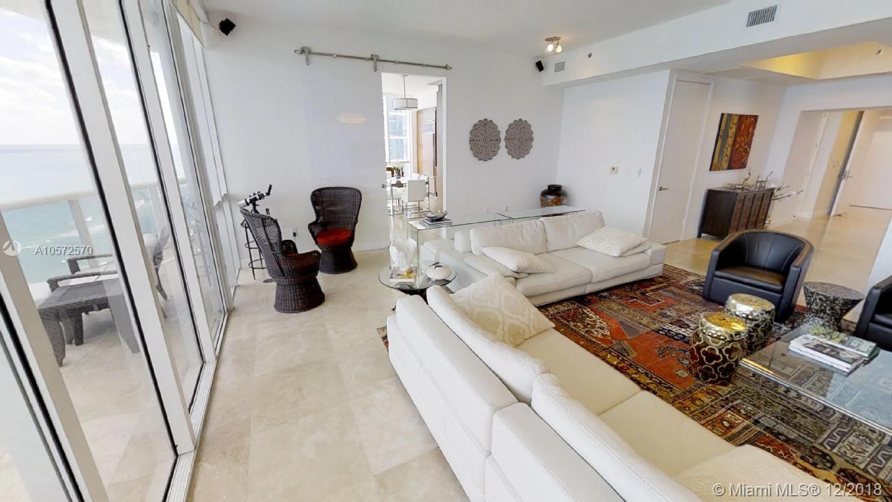 The most spacious direct ocean view residence at Trump Towers is waiting for you to start living Sunny Isles Beach at its best. Glamour meets luxury on this majestic skyvilla. Immense 180 degrees of ocean and beach views. Split floor-plan featuring 3 direct ocean view suites with private full bathrooms. Master-bedroom has direct access to the terrace, sitting area, his/hers walk-in closets and Jacuzzi tub. Finished in travertine stone floors and the highest quality details. Spacious chef grade kitchen with granite tops, cabinet matching SubZero fridge, wine cellar, espresso coffee machine and stainless steel appliances. Laundry/maid quarters. Pets welcome. Full service building with private beach access, pool, gym, concierge, valet parking.