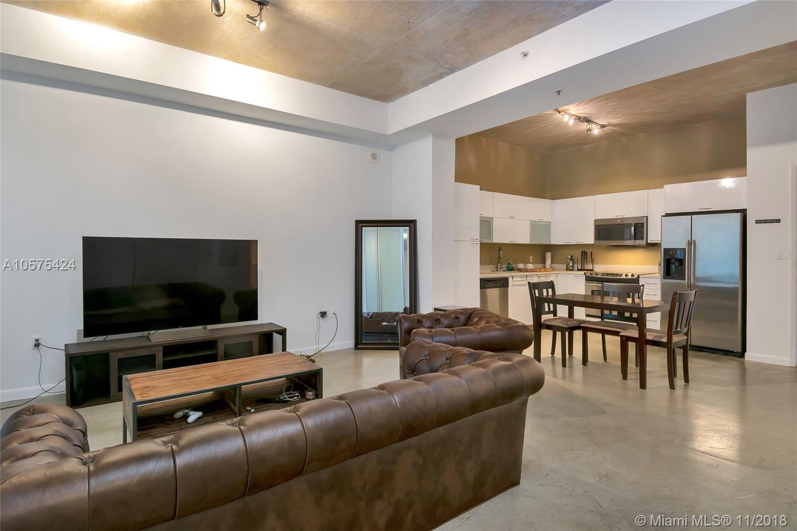 Live in the heart of Miami, loft style in a wonderful location. Beautiful and spacious loft unit, open layout, Italian styled kitchen with stainless steel appliances, polished concrete floors and high ceilings for a very urban feel. The unit has a set of sliding framed tainted glass doors that provide privacy when needed with a great look and style. Washer and dryer inside the unit. Prime location close to metro mover, shopping, many restaurants, concert venues, and entertainment. Garage parking space included. Pet friendly.