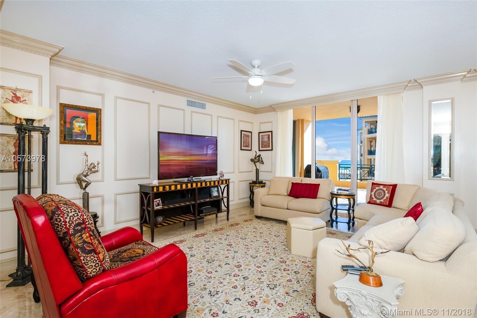 Spacious 2,800sf 3 bed/3.5 bath condo with 1,000sf of terrace overlooking the ocean and Intracoastal. Private elevator foyer enterance provides the ultimate privacy. Marble flooring throughout. Media/Den converted into 3 bedroom with on-suite bath and closet. Gourmet kitchen with all the top appliances including gas cooking. Generous master suite with walk-in closets. 2 parking spots and extra storage.