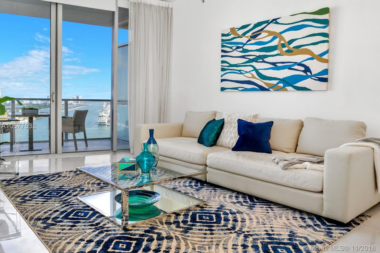 Incredible direct Biscayne Bay views from Downtown Miami's most exclusive luxury residential tower. The most desirable line in the building with 2 Bedrooms, 2.5 bathroom. From your private elevator and foyer enter with a spacious floor-plan amongst 1477 sq ft of interior space and expansive terrace. Impeccable modern details with upgraded kitchen and bathrooms. Floor-to-ceiling windows, Ambient lighting sets the tone for enjoyment & entertainment, Viking kitchen and countless designer details throughout. Amenities include spa, fitness center, 2 pools, full-service concierge, restaurants and more. EASY TO SHOW. ***OVER 150K IN RECENT UPGRADES AND REMODELING IN THE PAST 6 MONTHS***