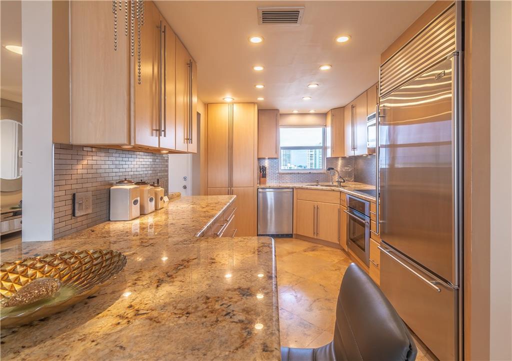 DIRECTLY ON THE INTRACOASTAL! RARELY AVAILABLE 3 BEDROOMS & 3 BATHS WITH SOME OF THE BEST VIEWS IN THE ENTIRE BUILDING! COMPLETELY UPDATED THROUGHOUT, MARBLE FLOORING, GOURMET KITCHEN WITH SUB ZERO REF, GRANITE COUNTER TOPS, PANTRY, MARBLE BATHS, TOTO TOILETS, BODY SPRAYS IN THE MASTER SHOWER, CUSTOM LIGHTING, BUILT IN CLOSETS, BUILT-INS IN THE LIVING ROOM & DINING ROOM, WET BAR WITH WINE COOLER & ICE MAKER, CUSTOM STONE WALL FEATURE IN LIVING AREA, CEILING FANS, FIREPLACE, STEREO SOUND EQUIPMENT, HUNTER DOUGLAS WINDOW TREATMENTS THROUGHOUT, FRONT LOADING WASHER DRYER IN THE UNIT. PRIME COVERED PARKING SPACE & STORAGE. AMENITIES INCLUDE CLUBROOM, BILLIARDS, FITNESS CENTER, HEATED POOL, SAUNAS, BBQ GRILL, ROOF TOP SUN DECK AND MUCH MORE! PRIME INTRACOASTAL FRONT,LOCATION WALK TO THE BEACH!