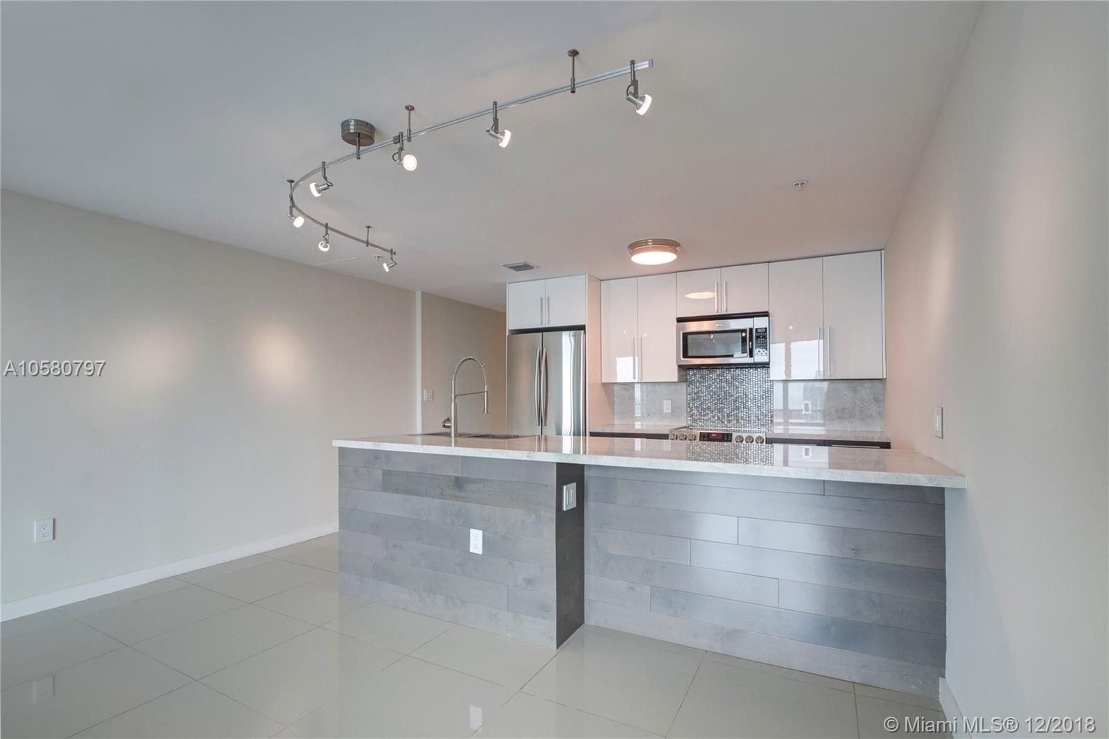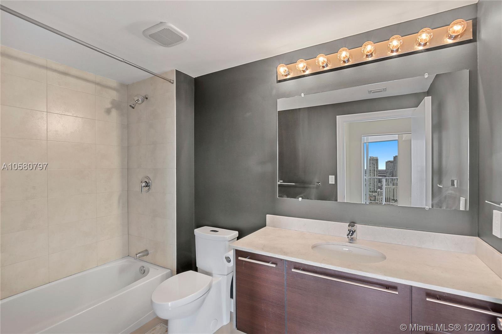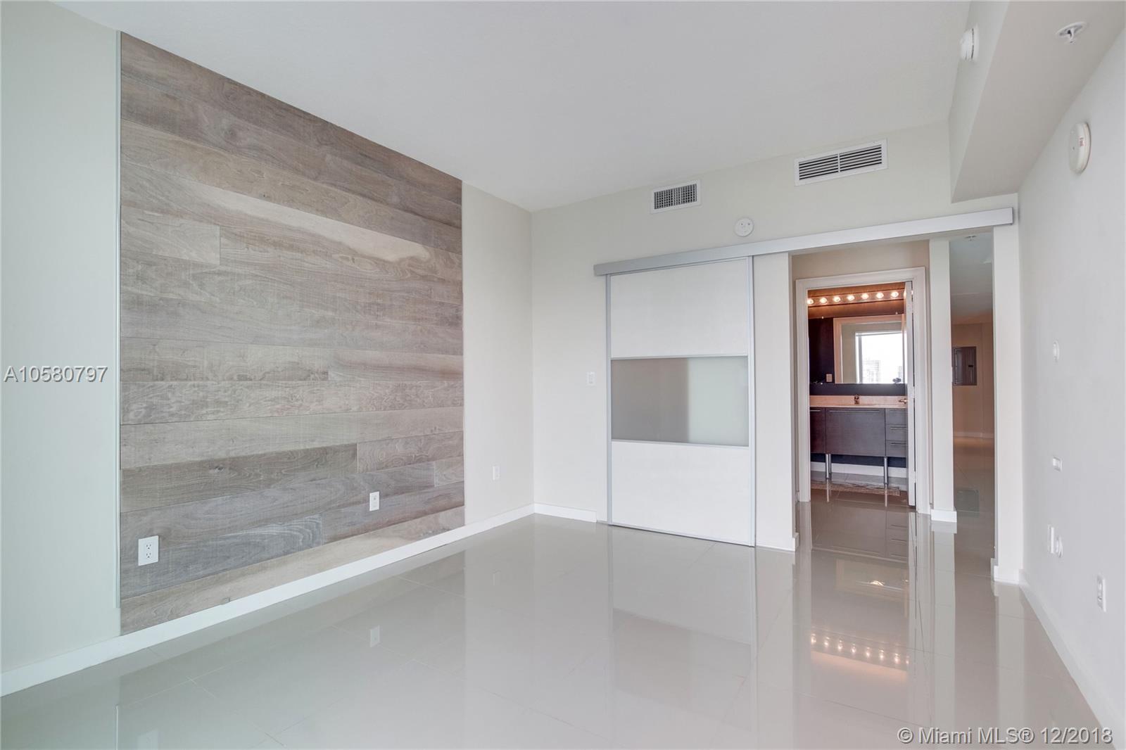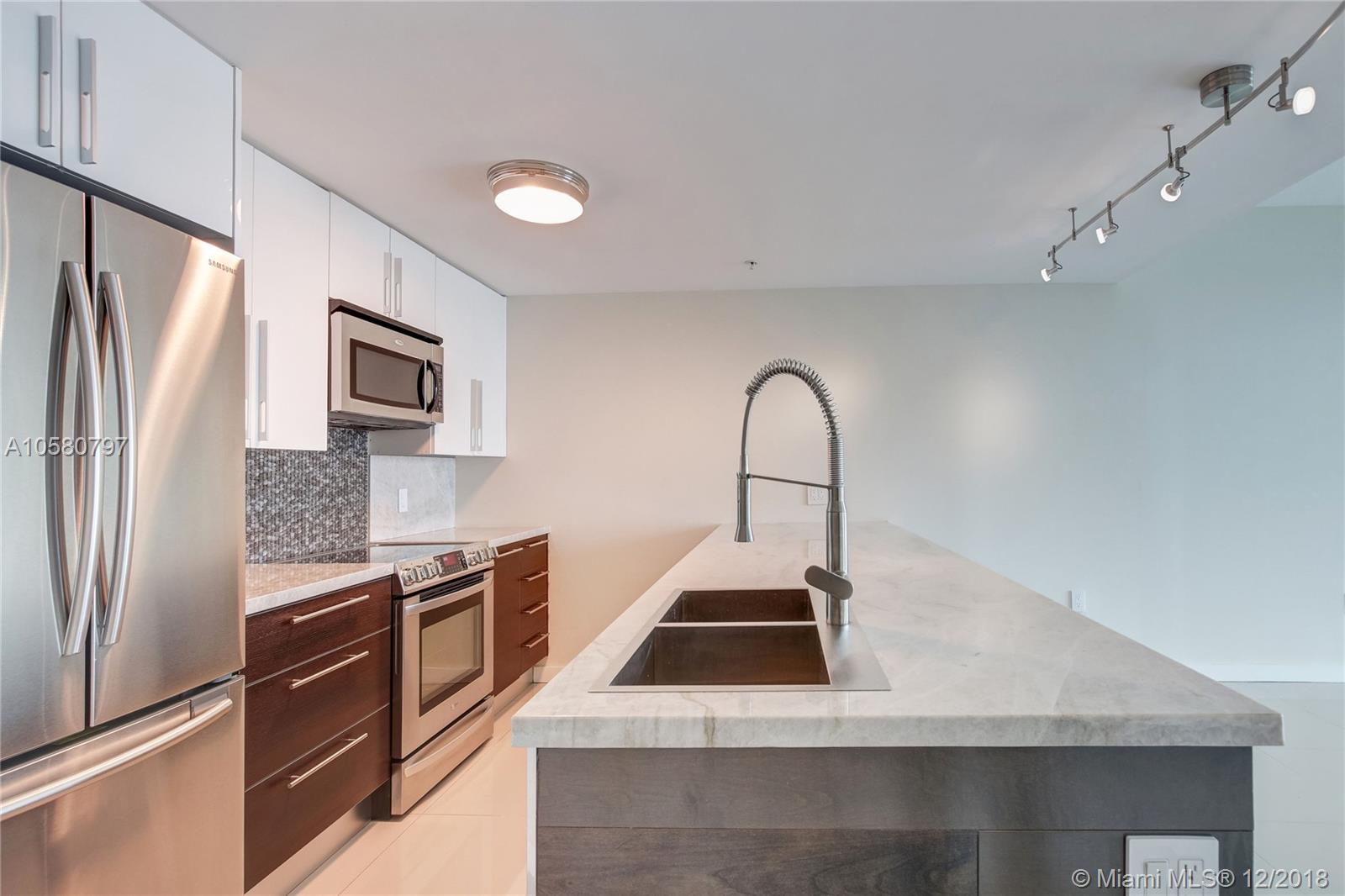 Rarely available, fully remodeled large 1bdrm + large den that can easily be converted into another bdrm or office. This unit is on the 42nd floor with stunning unobstructed views of Biscayne Bay and Miami Beach. The unit boasts of high end porcelain flooring and a remodeled Kitchen island extended with stone counter tops along with Cabinetry to the ceiling, providing additional storage space. The kitchen also has extebded white quarts countertops, high end sliding barn doors and motorized window treatments and a new front end washer and dryer. Luxury amenities include: 24h concierge, valet, convenience store, spa/hair salon, pool, jacuzzi, fitness center, saunas, movie theater and more. Short drive to Brickell, Wynwood, Design District shops and South Beach. Call today, easy to show.