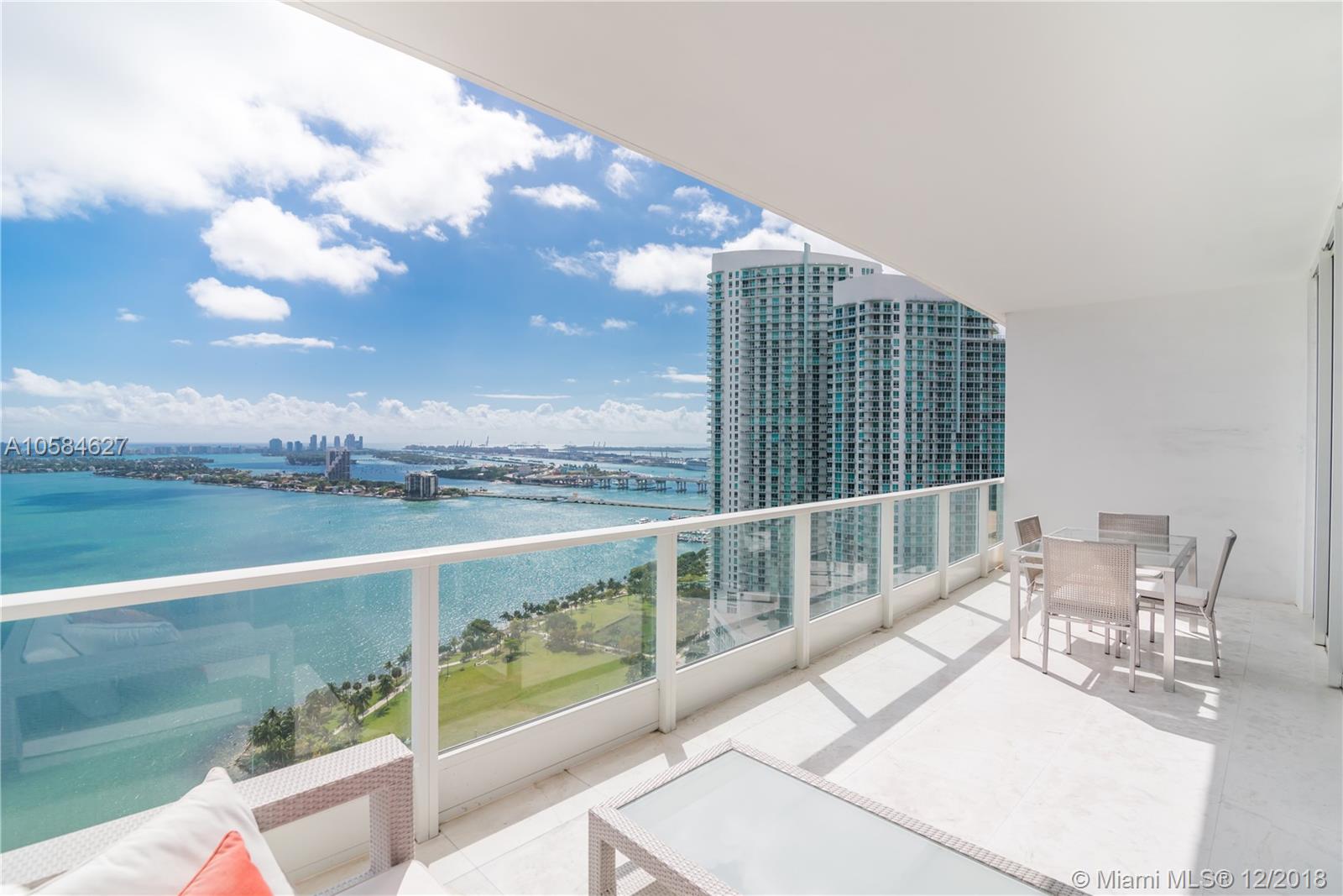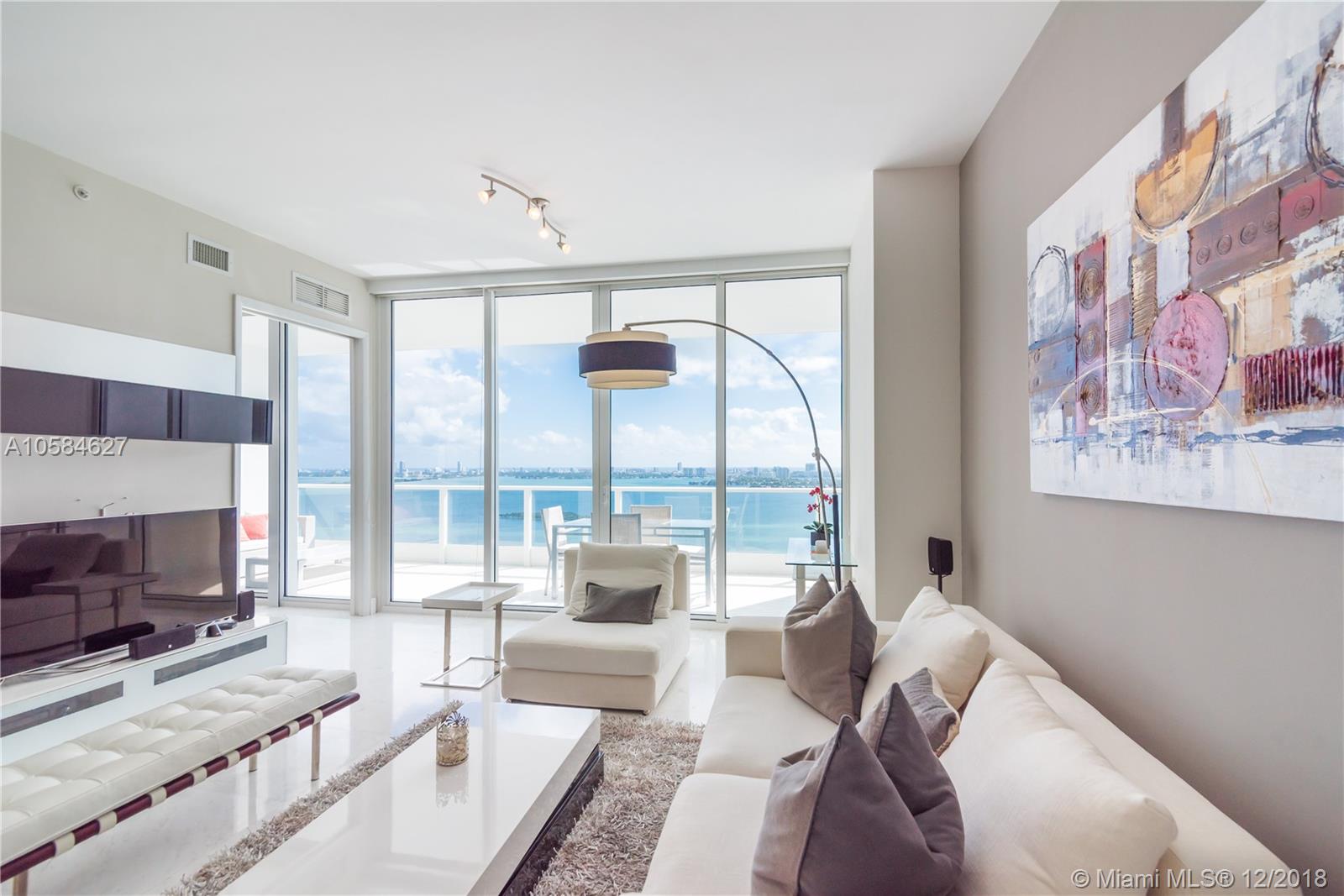 Unique flow-thru turnkey decorated unit converted into a 2 bedrm with undivided views of Biscayne Bay, ocean & the city. Approx 1,128 sq/ft in a resort like building featuring private foyers, over the top amenities designed by Lenny Kravitz. 24-hr security front desk staff, 2 pools, fitness center and spa, private clubroom and concierge services.