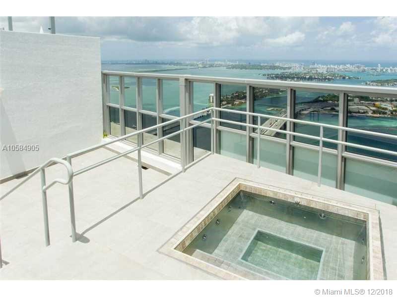 Back to market! Gorgeous three story loft in the sky from 63-65th floors with rooftop terrace(1416 sq/ft.) and Jacuzzi. Invest in a One-of-a-Kind Three Story Penthouse right off the iconic Biscayne Blvd. With less than a handful units from Edgewater to Brickell that have private rooftops that allow summer kitchens and jacuzzi spas; this unit will always be a stand out. Customized floor plan of 2901 interior sq/ft. Two bedrooms with and additional spacious loft that could be converted back into a third bedroom. Stunning multi-level stainless steel and glass cantilevered staircase set against a custom three story concrete finished wall is the centerpiece of this must see penthouse. Four assigned parking spots. Home to acclaimed ME Miami boutique hotel.