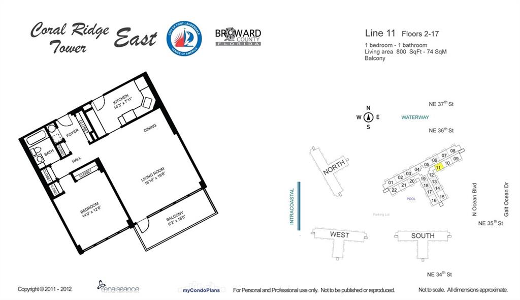 Incredible ocean views at an unbelievable price! Large one bedroom with southeast exposure featuring central A/C, hurricane impact windows / door, and your own private balcony. Newly installed porcelain tile floors. Beautiful updated Lobby and recent hallway renovation. 30 x 60 heated resort-style pool and remodeled clubhouse located on the Intracoastal Waterway with community boat dock. Located in a beautiful neighborhood walking distance to water taxi, post office, the beach, grocery store and restaurants. This is a financially secure / well managed building. Association states one buyer must be 55 plus. No pets and no rentals.