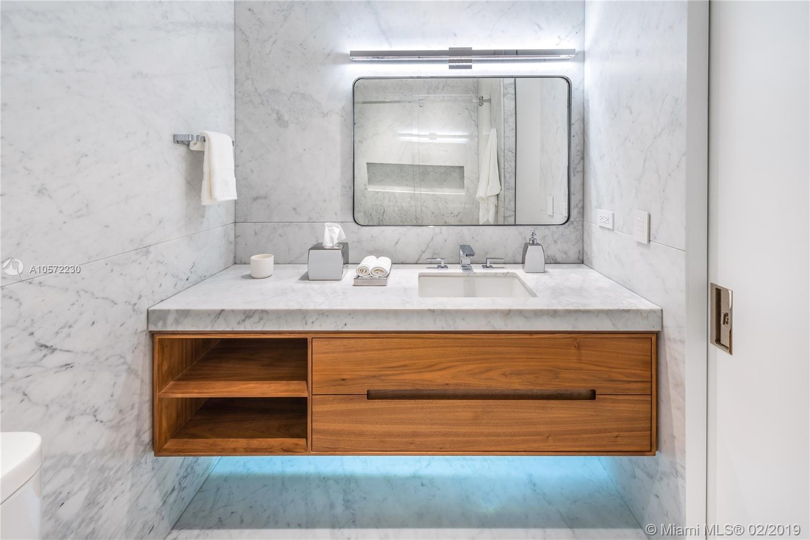 A modern oceanfront paradise in the heart of the city, this residence was completely renovated with no expense spared. Inspired by the surrounding sand and ocean, designed Deborah Wecselman with 1 FT x 10 FT Natural Oak flooring, Walnut laser cut book-matched panels upon entry, floating base boards & ceilings, a seamlessly integrated Boffi kitchen, Thassos marble master bathroom and Carerra Marble Guest Baths. Take in the breathtaking sunrise and sunset through floor to ceiling glass windows that allow for uninterrupted views of the Atlantic Ocean, South Pointe Park and Biscayne Bay.