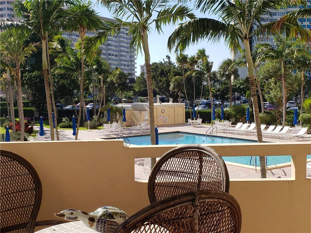 Elegant tropical resort like 1 bedroom condo with views of immaculate garden and pool. Improvements include an updated fresh paint, kitchen and bath, laminate floors and impact windows throughout. Spacious unit with ample storage. Furnished. Short distance from Fort Lauderdale beach, shopping and all amenities. Complex features heated pool, community room, new gym, clubhouse, parking, shared laundry. Assoc. says 55+, Annual Gross Income Reqt $38K with 700 Credit Score, no pets, no rentals.