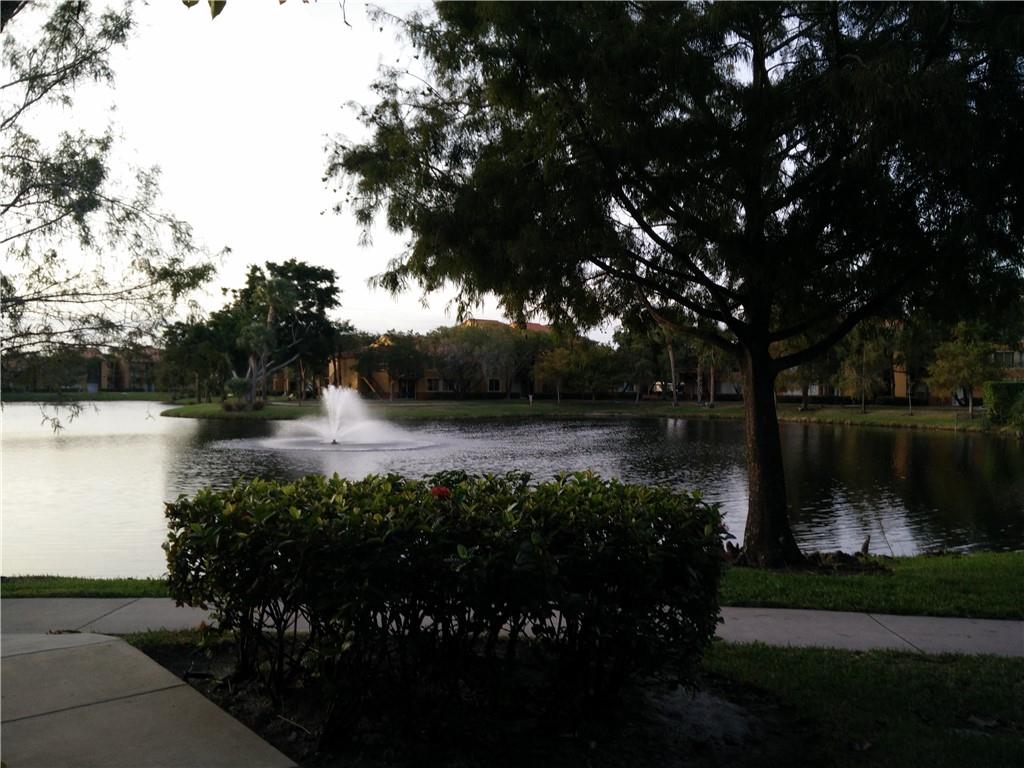 Beautiful lake facing 1 bedroom 1 bath unit on the first floor, tiles In the kitchen, dining and the living room. Laminated flooring in the Master bedroom. In unit Washer dryer, Lake facing patio, walk in Closet. Very desirable resort style condominium with its own lakes, and Bike/Jog Path, Bbq/Picnic Area, Clubhouse, 2 resort style pools with a Spa , Newly renovated tennis courts and Gym. Walking distance to A grade Central Park Elementary school and across the street to Sunset park! The apartment has Polybutylene pipes,The new buyer is required to change it within 60 days after closing. Currently leased for $1,300 a month till July 31st 2019. Showings by appointment only with 24 hours request. Do not disturb tenant.