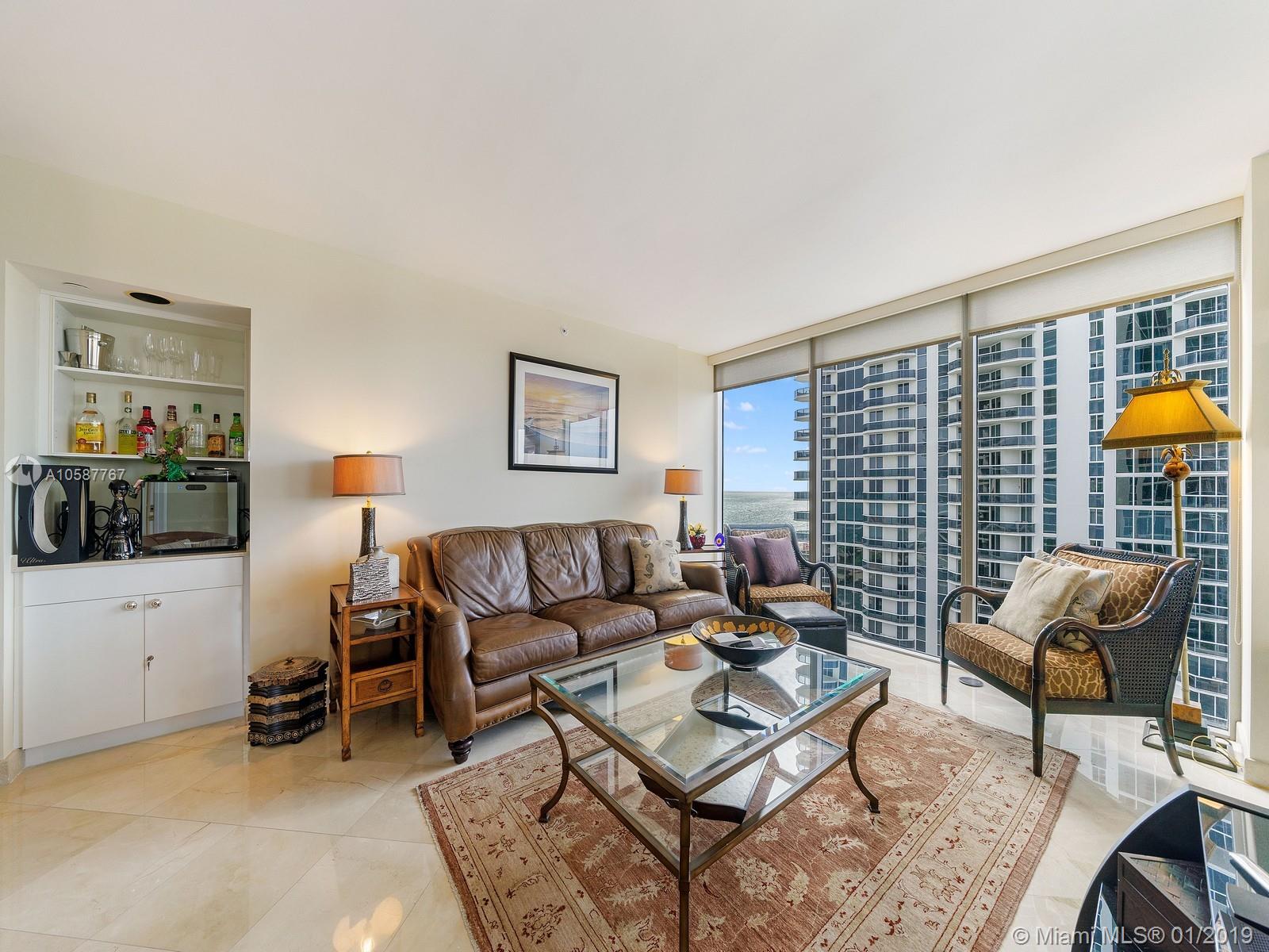 Reduced price, owner very motivated! Spectacular corner unit at Blue Diamond with breathtaking views of the ocean, intracoastal and downtown Miami city views. This 2/2 residence offers floor to ceiling glass windows, marble floors, wood floors in bedrooms. Eat-in-kitchen with granite countertops and top of the line appliances. Building offers first class amenities, 24 hour valet and security, concierge services, tennis court, large pool with towel service, gym, café/market with room service. Huge Clubhouse/spa oceanside with 500 feet of white sandy beaches to the East and its own private marina to the West, personal trainers, free gym classes, nursery, billiards, business center and much more.