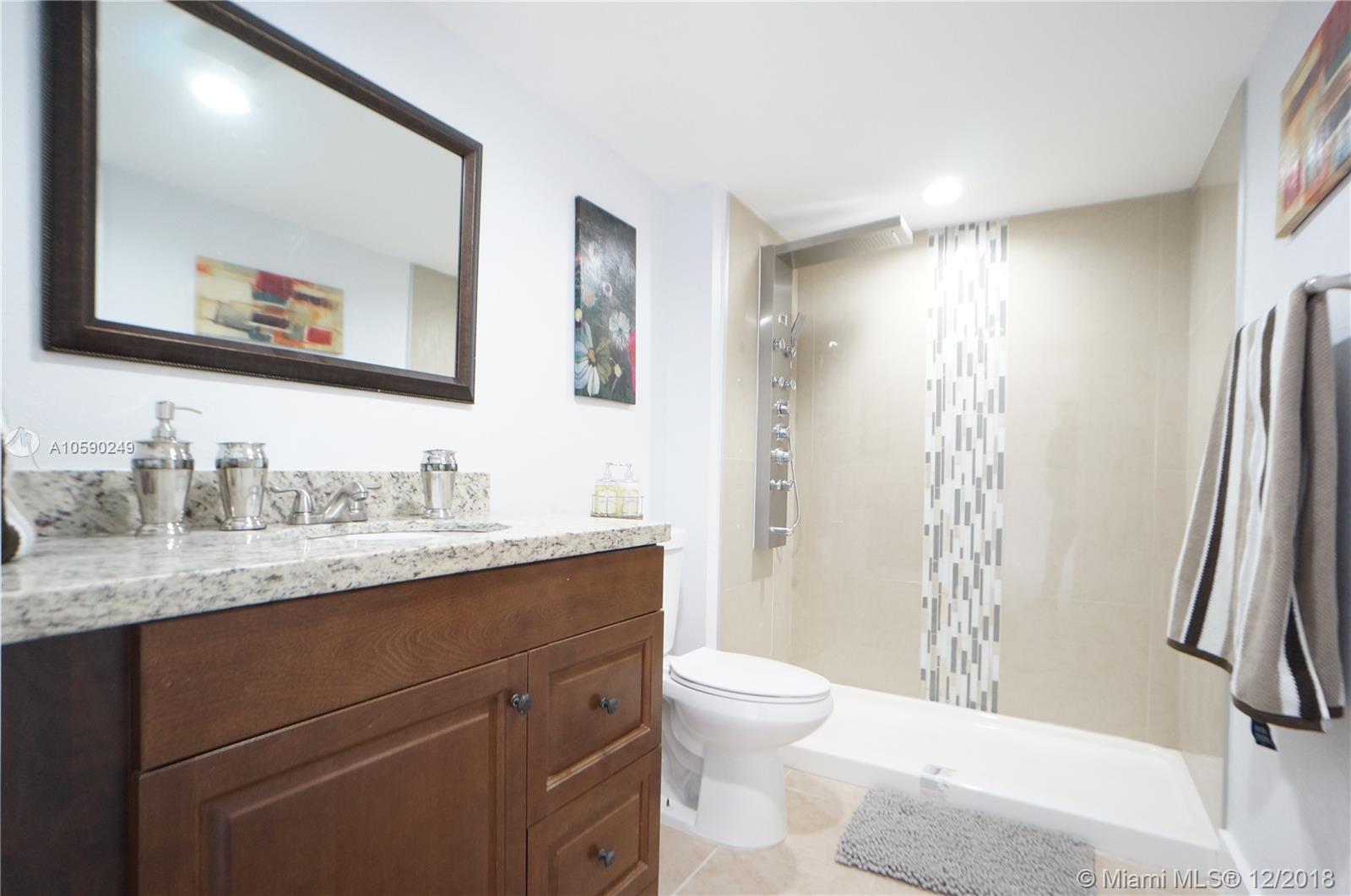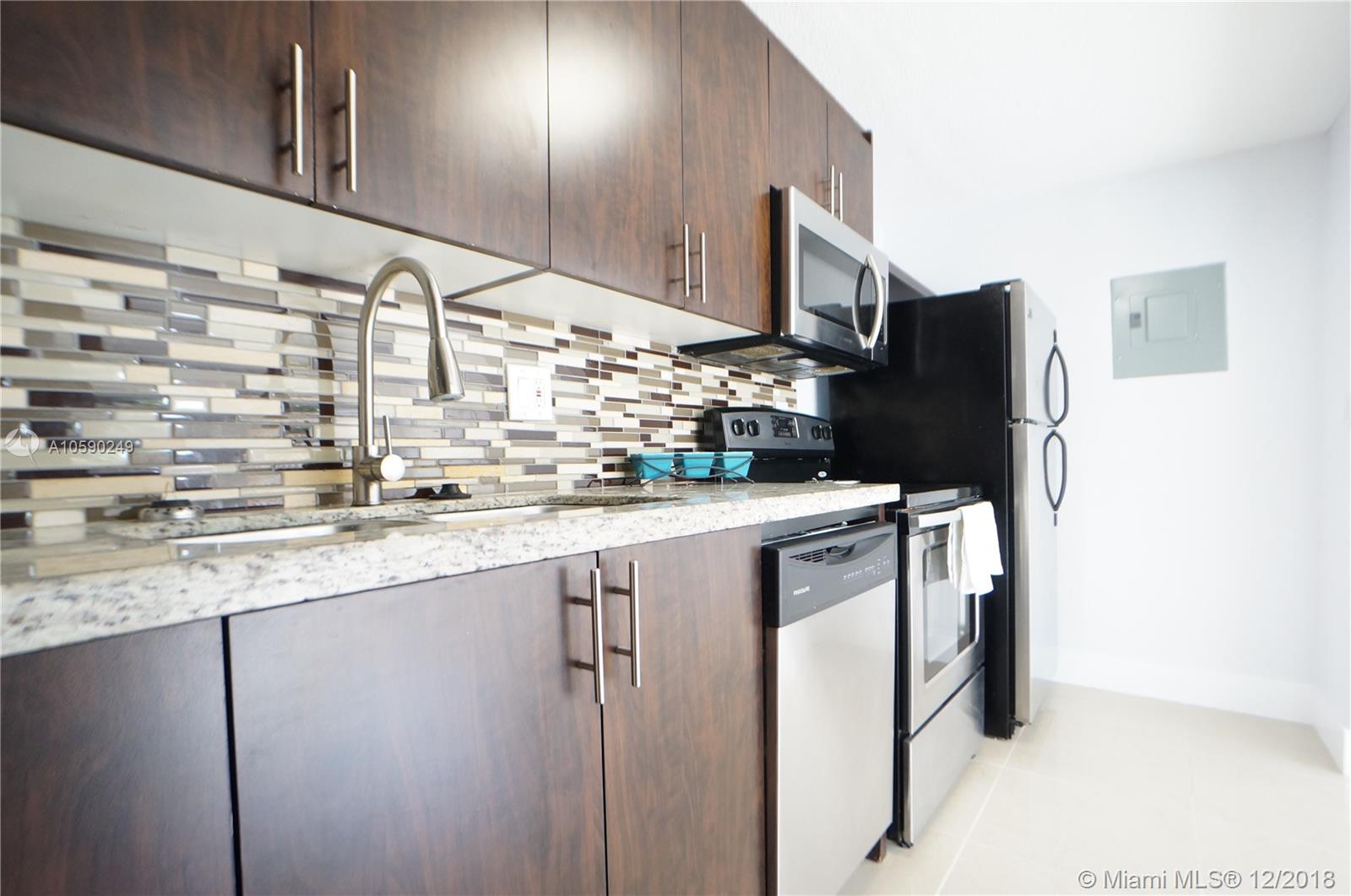 Investor's dream! Nicest unit at Doral Gardens! Forget the rest and bring your pickiest client to see this completely remodeled (2016) two bedrooms (one bedroom converted to two) and one bathroom first floor corner condo with updated kitchen with granite counter-tops and Stainless Steel appliances! Updated bathroom with modern shower panel and glass door (to be installed soon). High end porcelain tiles with new baseboards and crown moldings. All new A/C and water heater. Large fenced in patio private patio. Common laundry room located outside right above unit. Investors welcomed, can rent right away with very low HOA fees and pet friendly (one pet up to 40 lbs). This one's a winner, rents fast and easy for $1,500. NO NEED TO CALL FOR STATUS, IF ACTIVE SHOW AND SELL!!