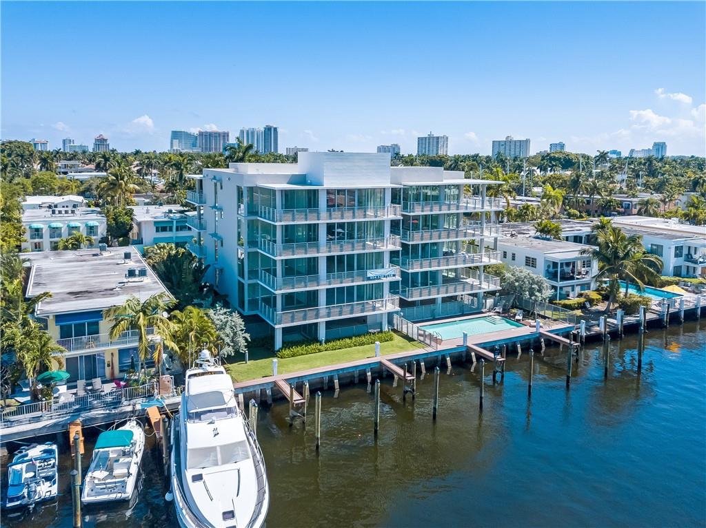 AQUAVUE, Waterfront Living At Its Finest. East Fort Lauderdale's newest contemporary condominium where every unit comes with deep water dockage. Flooring throughout, window treatments and closet systems from the developer. This boutique lifestyle consist of only 8 condominiums and all residences are flow thru corner units with floor to ceiling windows. Multiple sliding doors integrate indoor and outdoor living spaces overlooking the waterway and a parade of boats. The open floor plan is conducive to today's lifestyle with a sleek contemporary kitchen and stunning bathrooms. Amenities consist of a gated garage, electric car ready, heated pool with chaise lounges, & fob entry system. Within walking distance of restaurants, shops & Fort Lauderdale Beach. Sq. Ft. from Developers plans.