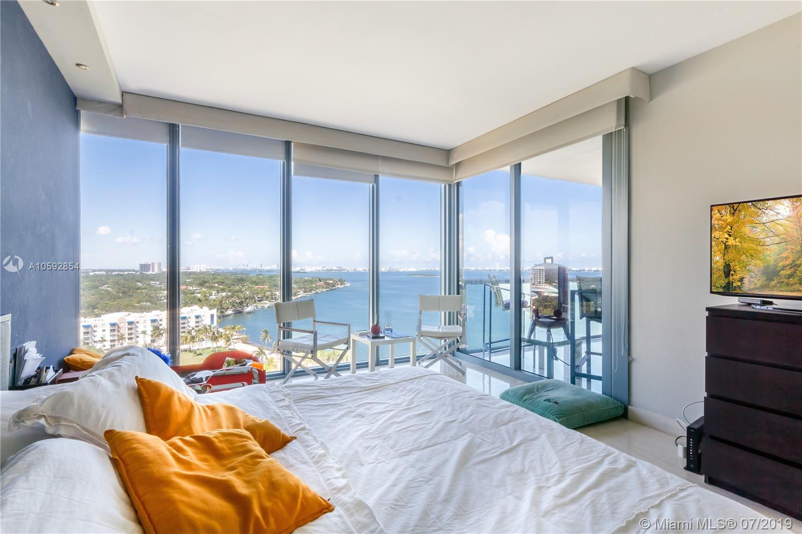 Amazing unobstructed bay views that will surely make all of your friends jealous! Floor to ceiling glass that is designed for maximum exposure of the Biscayne Bay! 2bd/2.5ba with a large living area and split floor plan. The unit has marble floors throughout, large custom walk-in closets, window treatments, new AC, new dryer, and recessed accent lighting. Kitchen features stainless steel appliances and granite countertops. The apartment has 2 PARKING (1 assigned and 1 valet) and a huge bonus storage locker. The building is located a few mins away from Midtown, Design District, Wynwood and easy access to I-95, Biscayne Blvd, I-195 Bridge, and the airport. Amenities include one of the best gyms in the area, semi-private elevator, 2 pools, movie theater, 24/7 staff, and much more! MUST SEE!