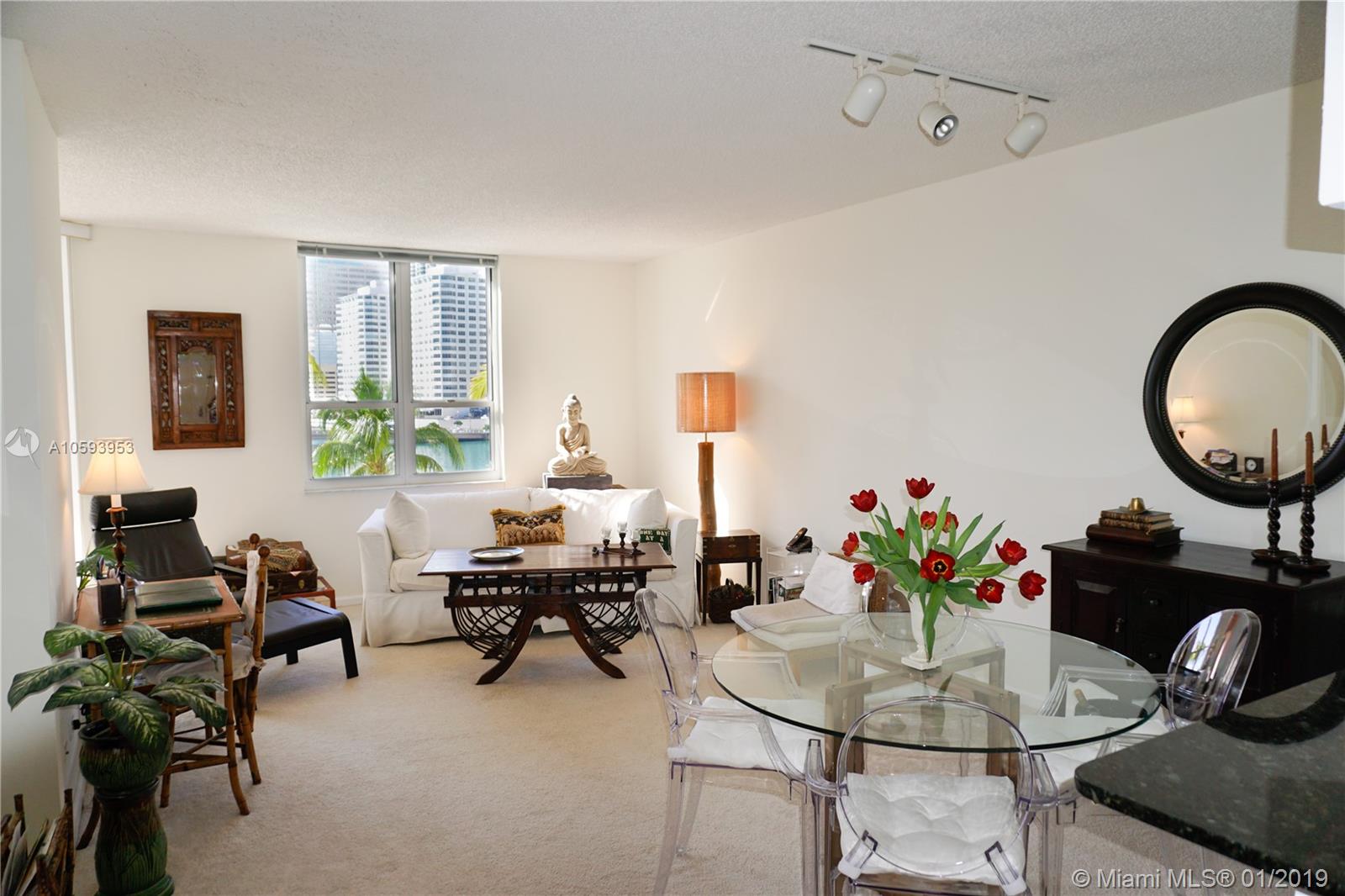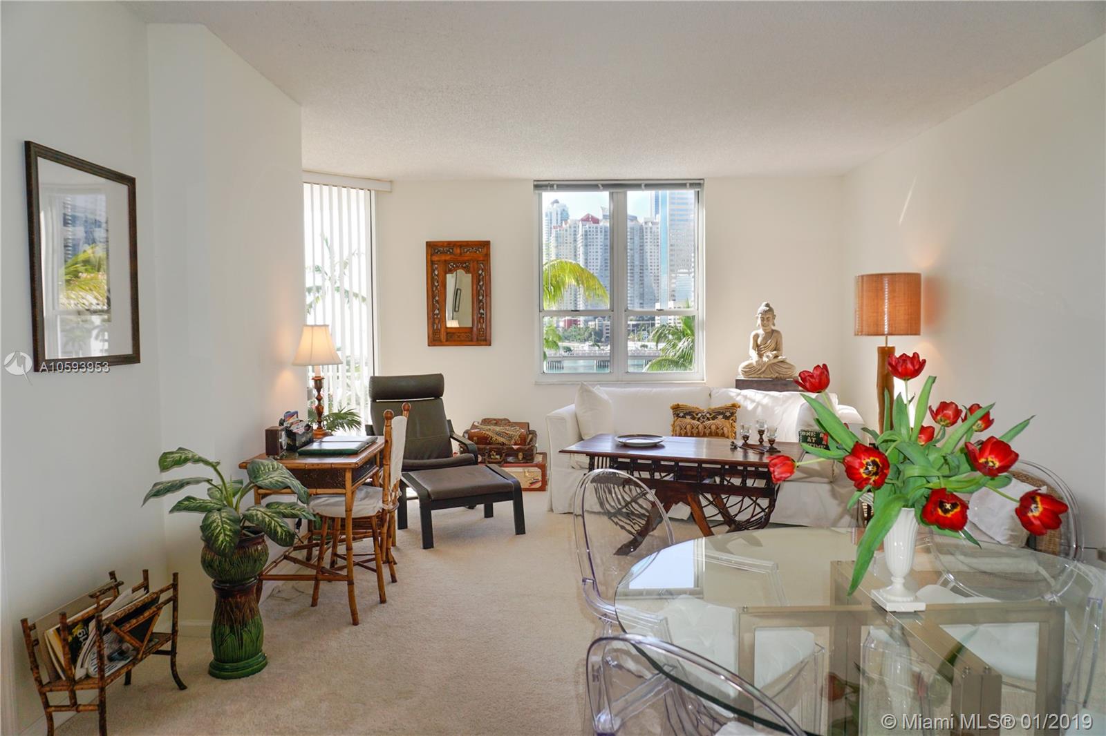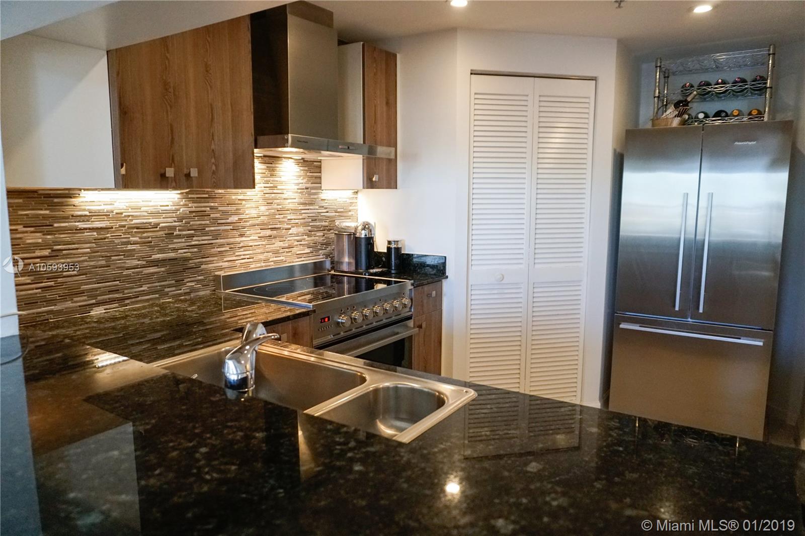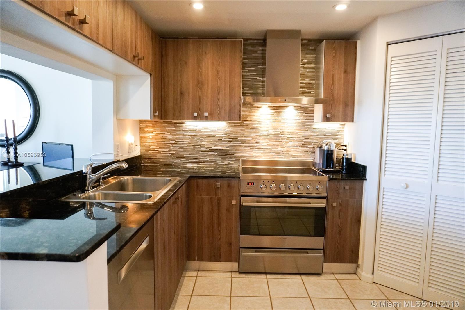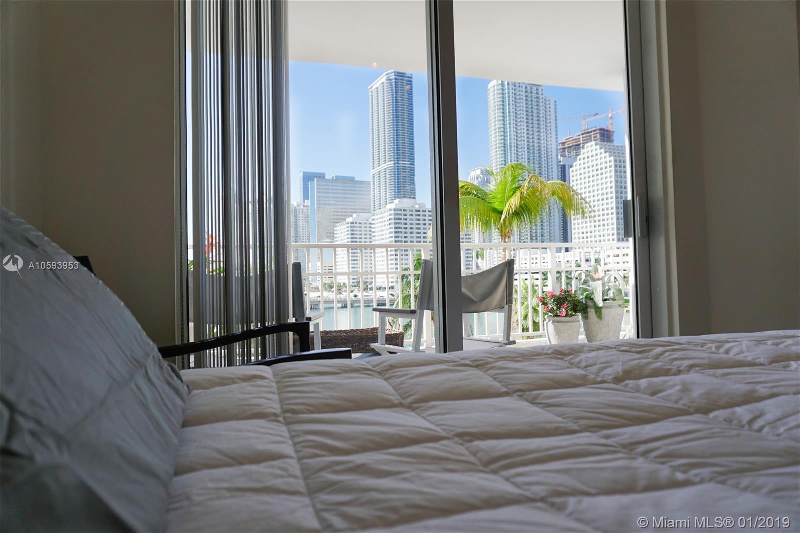 Waterfront! Direct, unobstructed water views. 01 Line is the only 1 bedroom 1.5 bath with direct water views. Remodeled kitchen with high-end SS appliances, LED lighting and much more. This well-maintained unit has been exclusively owner occupied. Enjoy island walks, large heated pool, spa, professionally equipped fitness center, squash and racquetball courts, billiard room, business center, concierge, covered parking, valet, plus complementary valet for guests. Enjoy peaceful island life at Courvoisier Courts on Brickell Key.