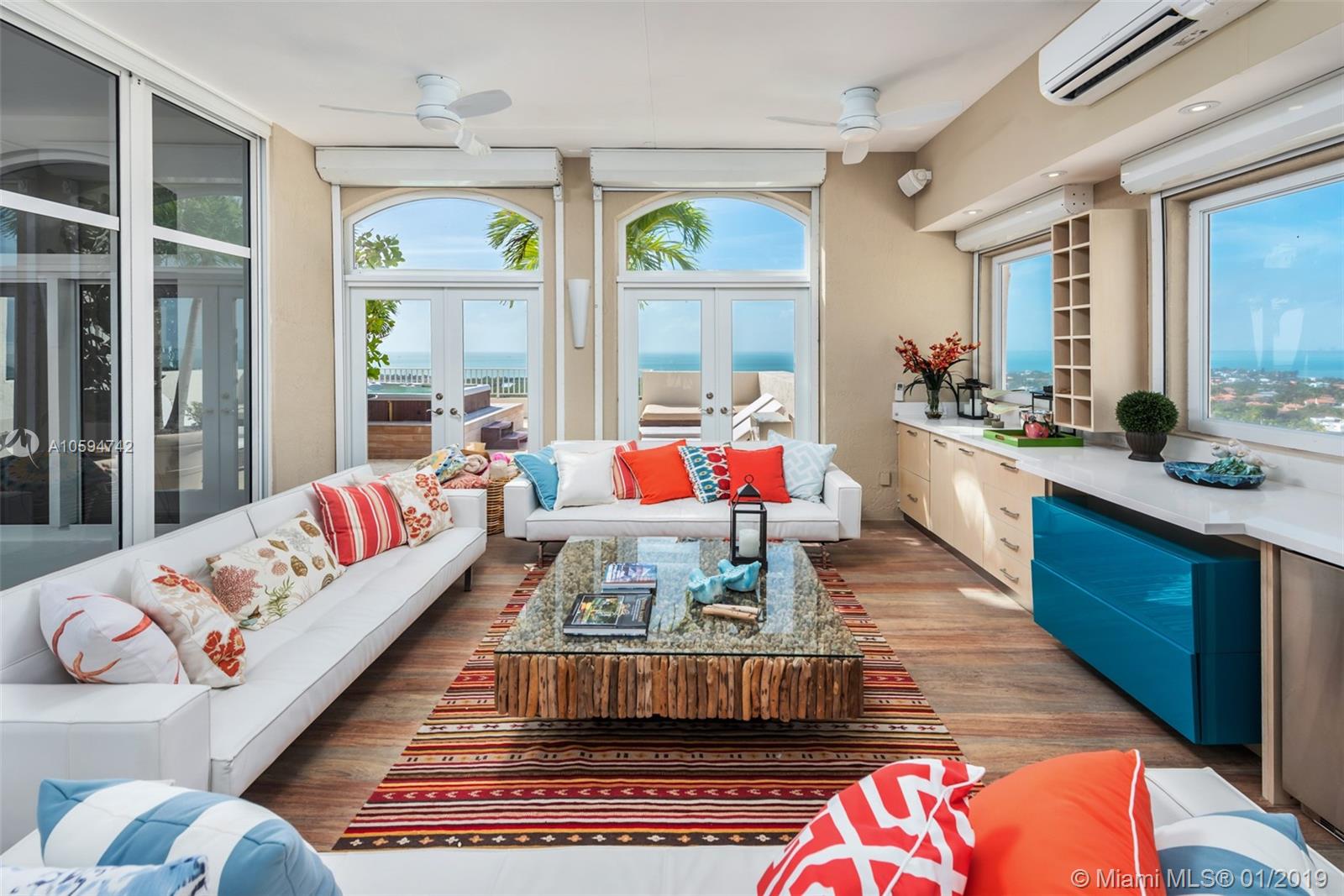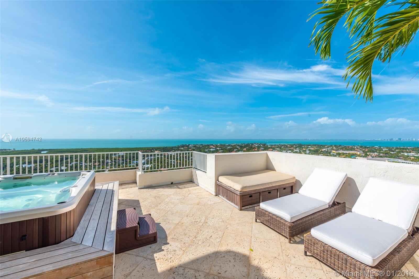 Amazing roof top corner PH unit in Club Tower One. Enjoy the breathtaking views of the beach, ocean, the bay and the park with unforgettable and stunning sunsets. This gorgeous penthouse offers 3 bedrooms, 4.5 bathrooms, plus a den and a glassed enclosed family room on the second floor with an incredible oversized roof top terrace including a magnificent Jacuzzi and office. Sq Ft of unit with enclosure is 3,100 Sq Ft under A/C. Owner will consider selling the furniture separate from the Real Estate. Easy to show.