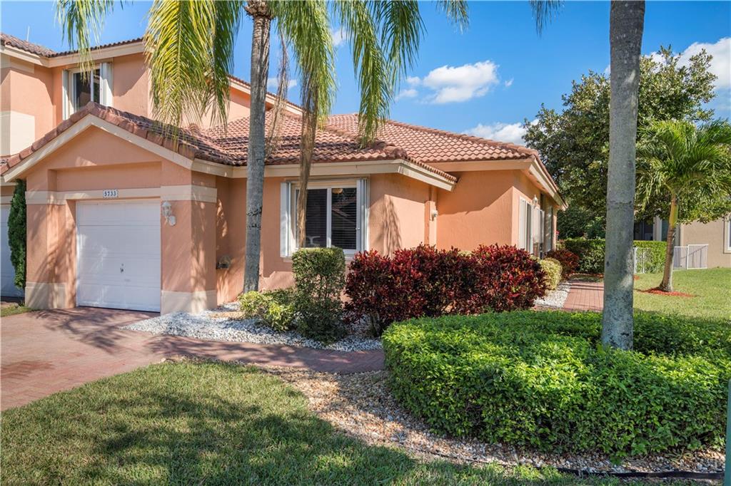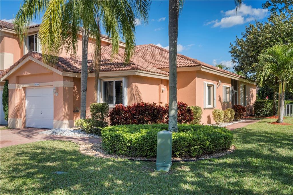 Rarely available 3/2 corner villa with 1 car garage in Fairways at Heron Bay. Accordian shutters, plantation shutters, SS appliances with corian counters and tile back splash. Tile floors in living areas and new carpet in bedrooms. 2 closets in master bedroom. Covered/screened patio area with fenced yard. Move in condition.