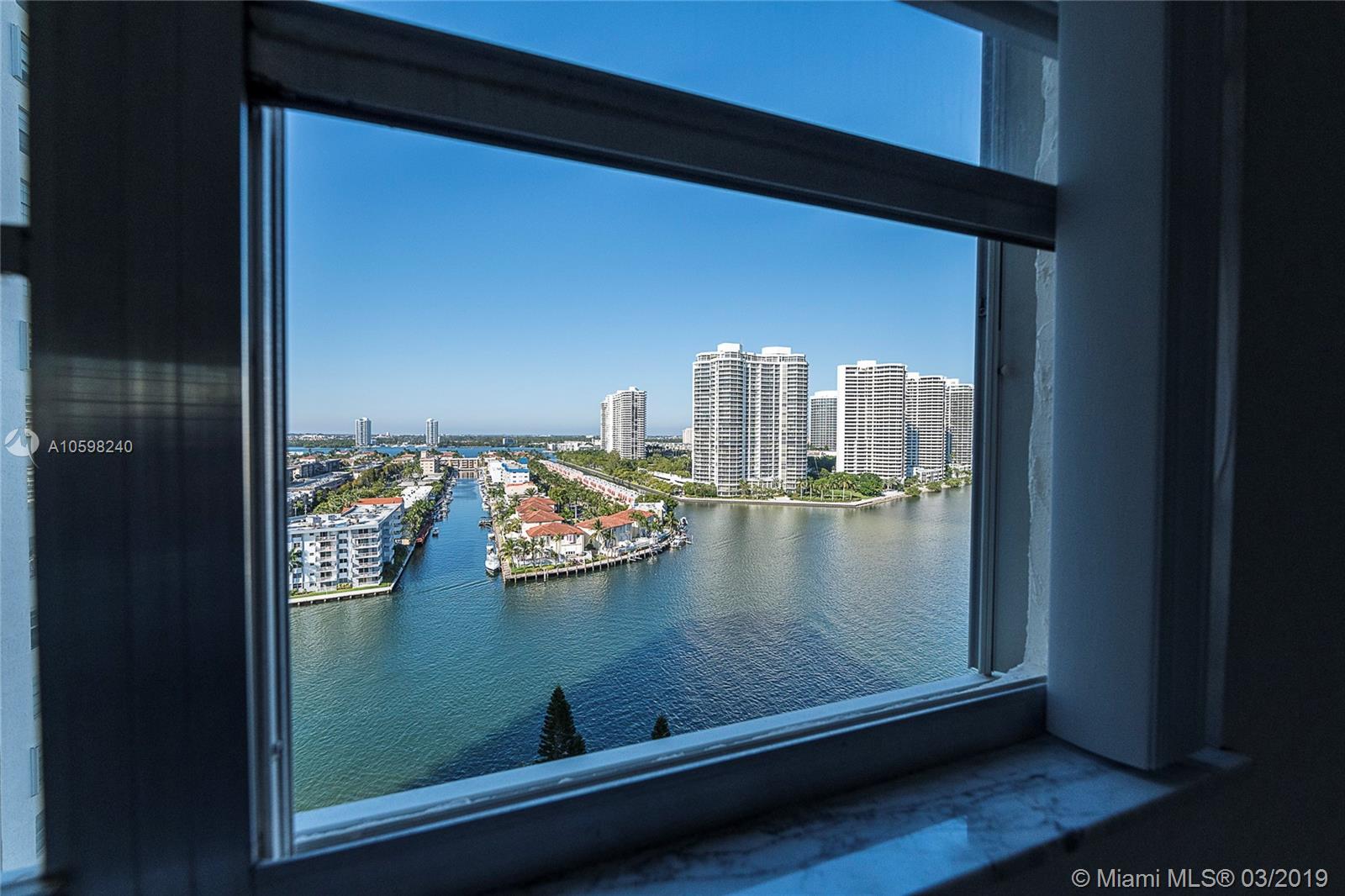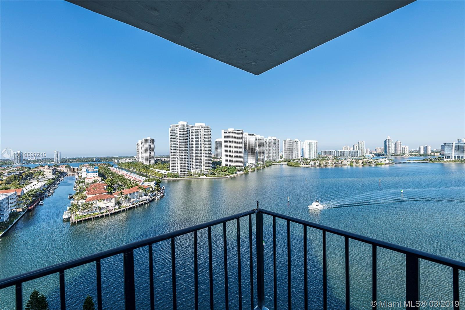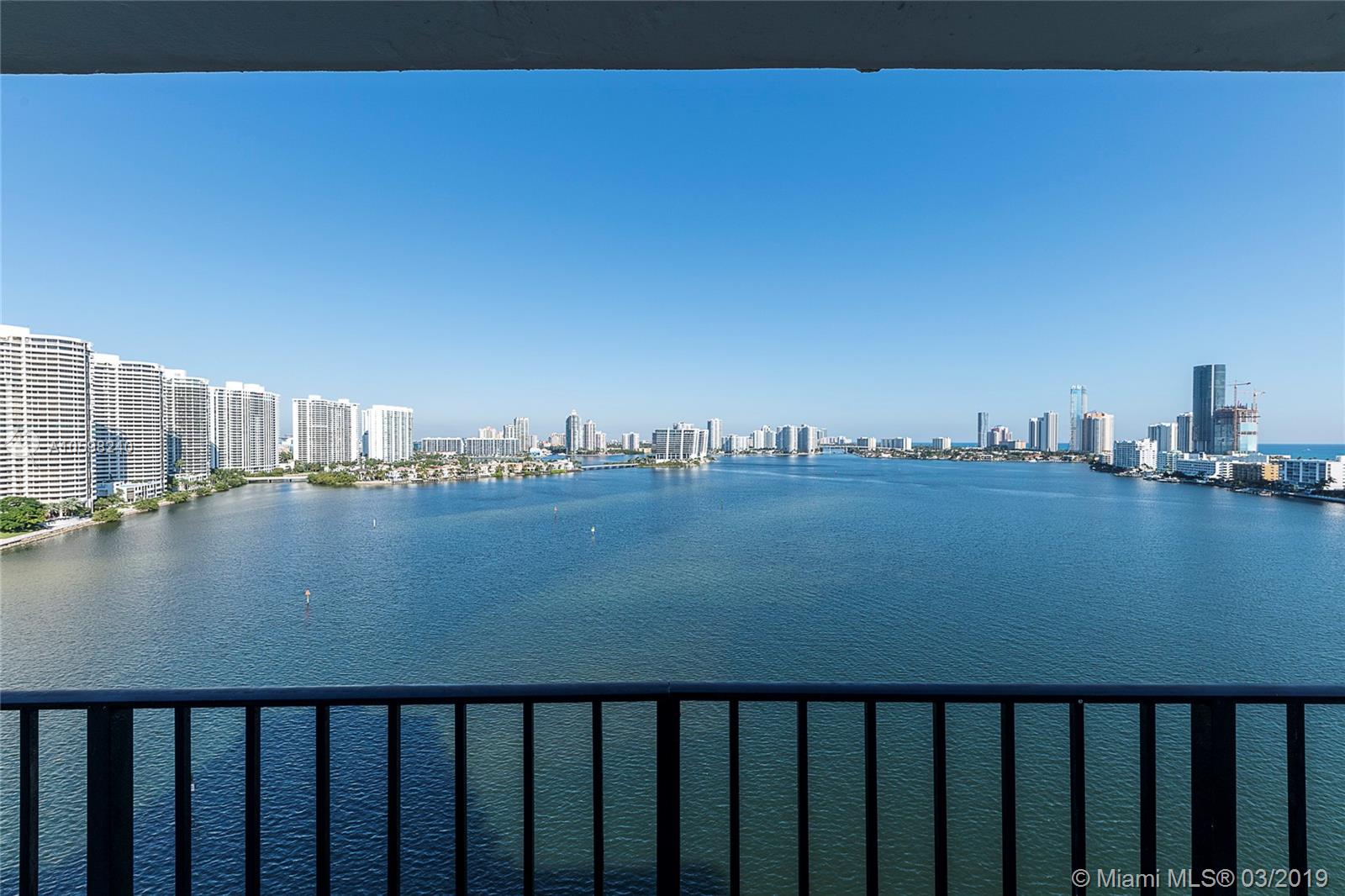 Price to sale, gorgeous corner unit with magnificent Intracoastal and City views, large wrap around balcony, wide foyer, bright open floor plan with panoramic water views, eat-in kitchen, large 2bed/2bath (1856 sq living area) in the heart of Sunny Isles, very low maint. fee which includes internet, cable and water. Pet friendly, walking distance to the beach, community shuttle bus stops near the building and takes all around the City. No Rentals, easy to show.