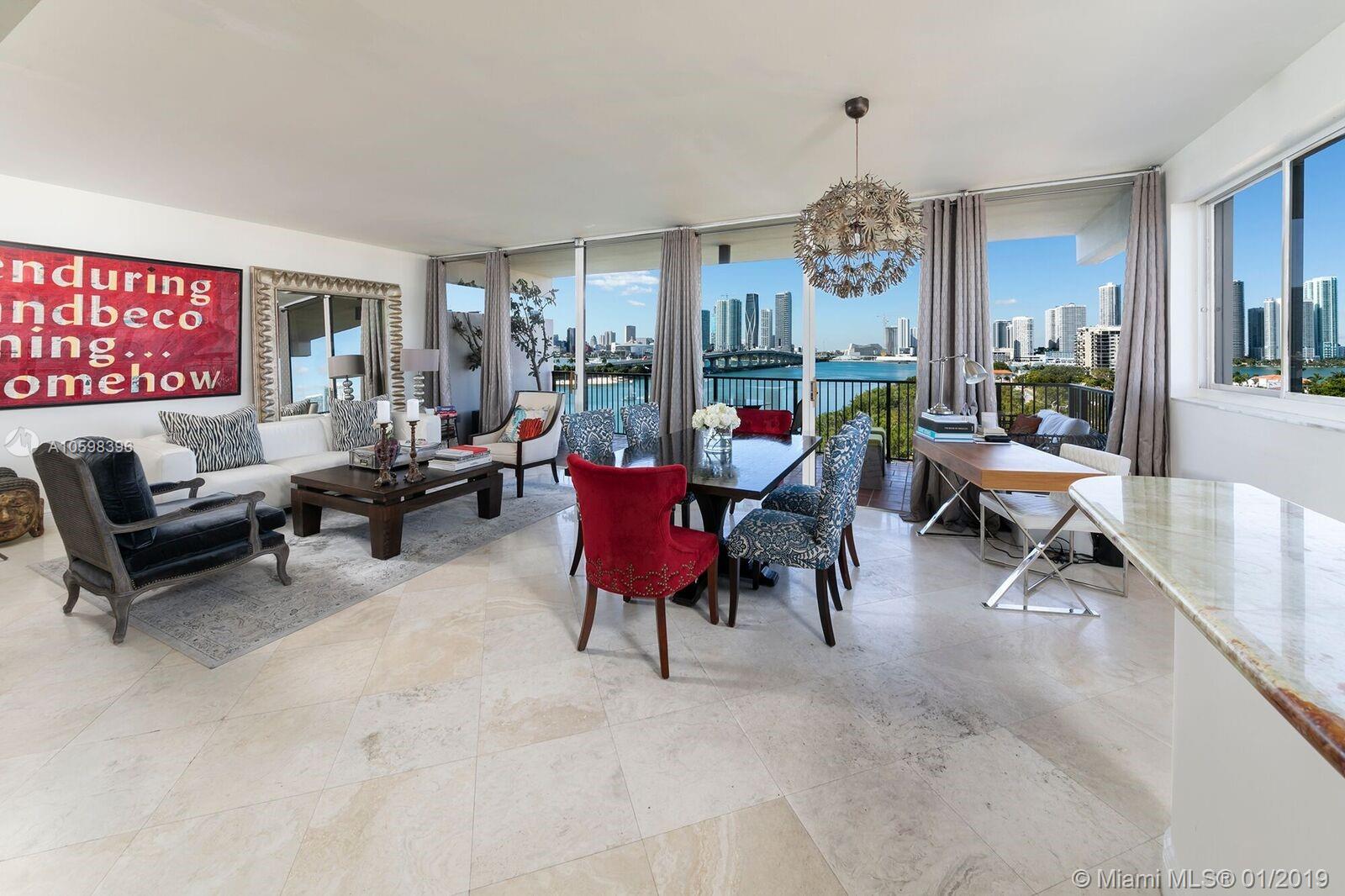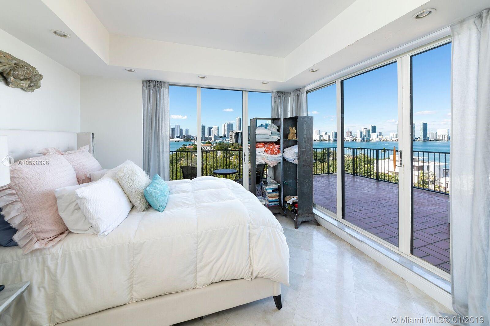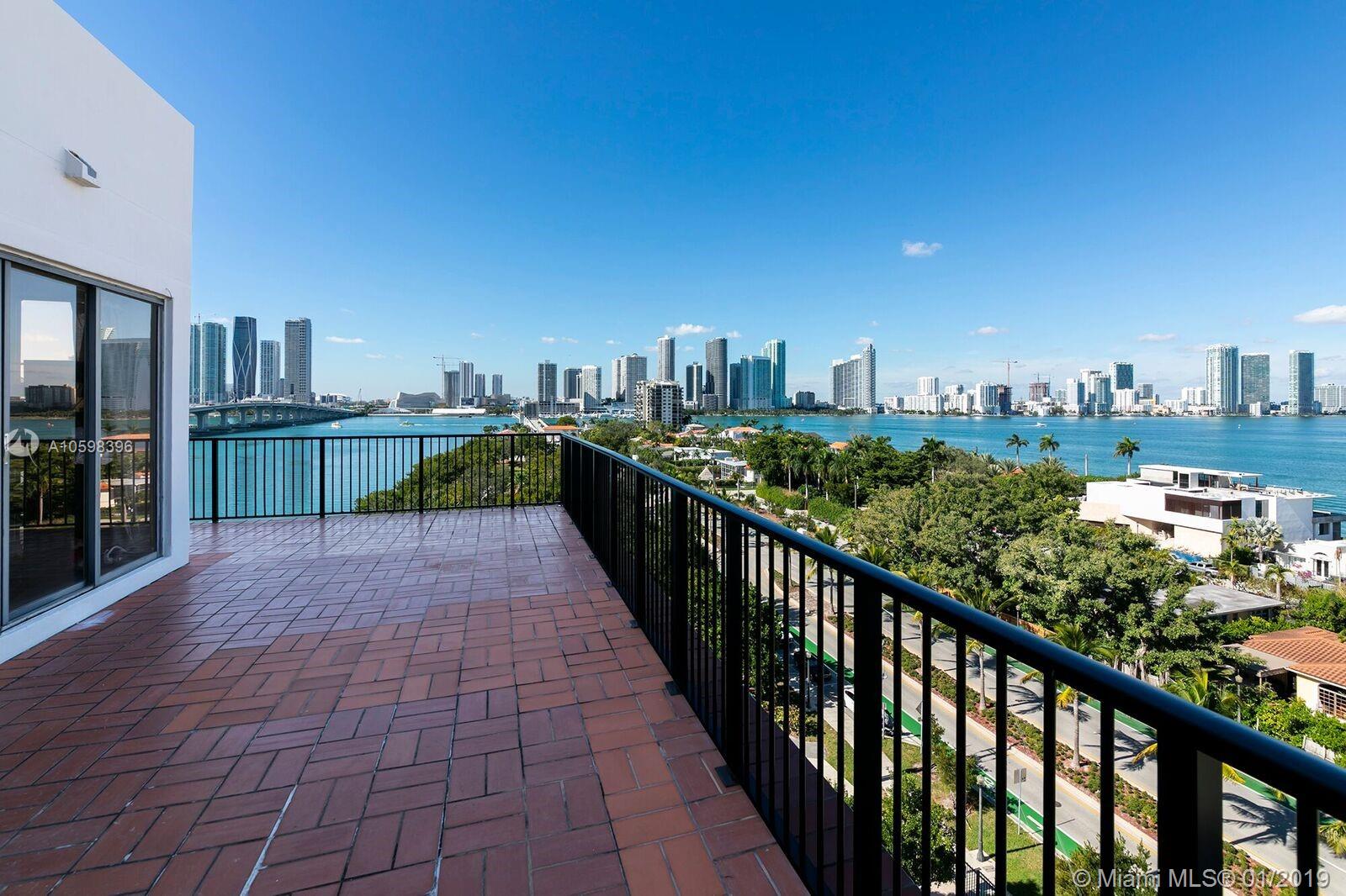 Huge price reduction. Motivated seller! Enjoy spectacular sunsets & unobstructed wide bay with city skyline views from every angle in this spacious home located on prestigious Venetian Causeway. Unique two story corner unit with over 9' walls of sliding glass doors opening onto approximately 754SF of private terraces. One of only a few units in the building with a large extended terrace. This oversized 1 bedroom / 1.5 bath has just over 9' ceilings with a large bedroom upstairs. This corner unit has unobstructed West and North bay views. Incredible location on the red hot Venetian Islands with easy access to South Beach, downtown, Standard Spa, shopping, restaurants and Lincoln Road! Easy to show.