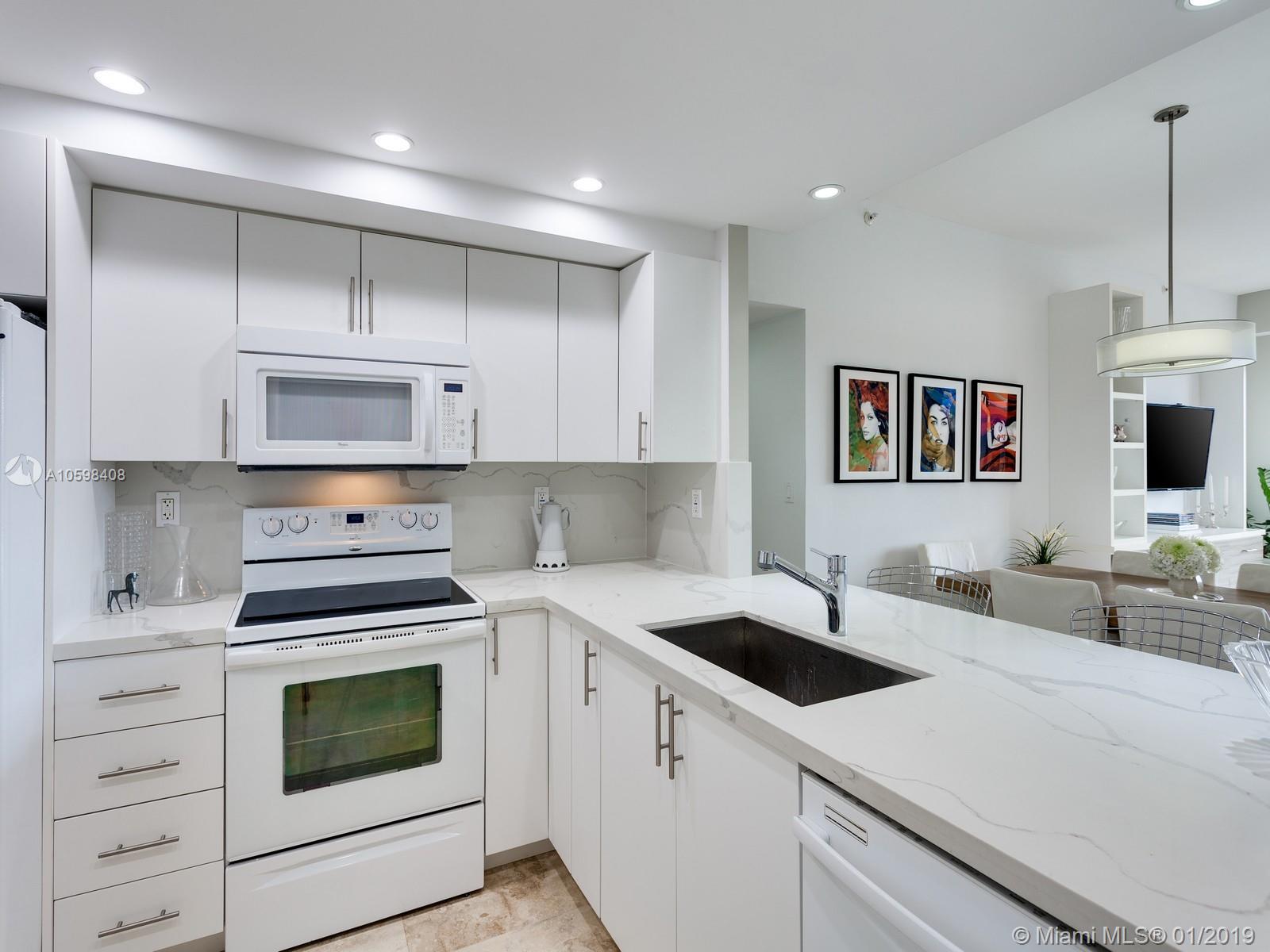 TIDEMARK 1 BEDROOM 1.5 BATHROOM PENTHOUSE! This spacious and bright unit has been totally remodeled- unit has marble floors through, a huge master bedroom, a beautiful white and open kitchen, and beautiful views of the beach and the bay from balcony. TWO covered parking spaces! Key colony 1, The Tidemark, is a waterfront condominium with beach access. Amenities include two family pools, lap pool, jacuzzi, ocean side café, 12 tennis courts, exercise room, sauna, steam room, recreation room, and wide private beach. Great location close to top rated schools, restaurants, shopping, and more. Unit is move in ready.